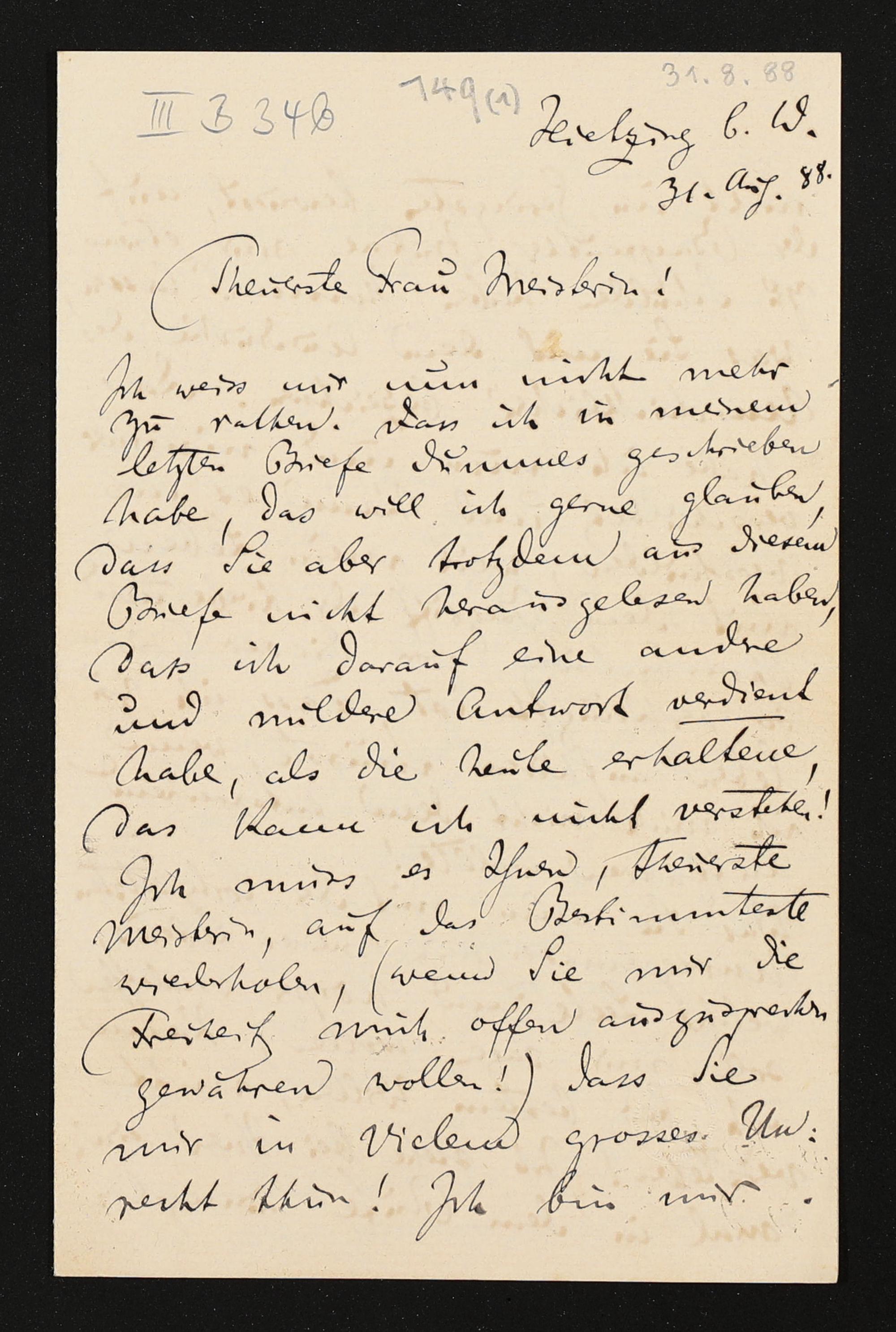 eigenhändiger Brief von Felix Mottl an Cosima Wagner