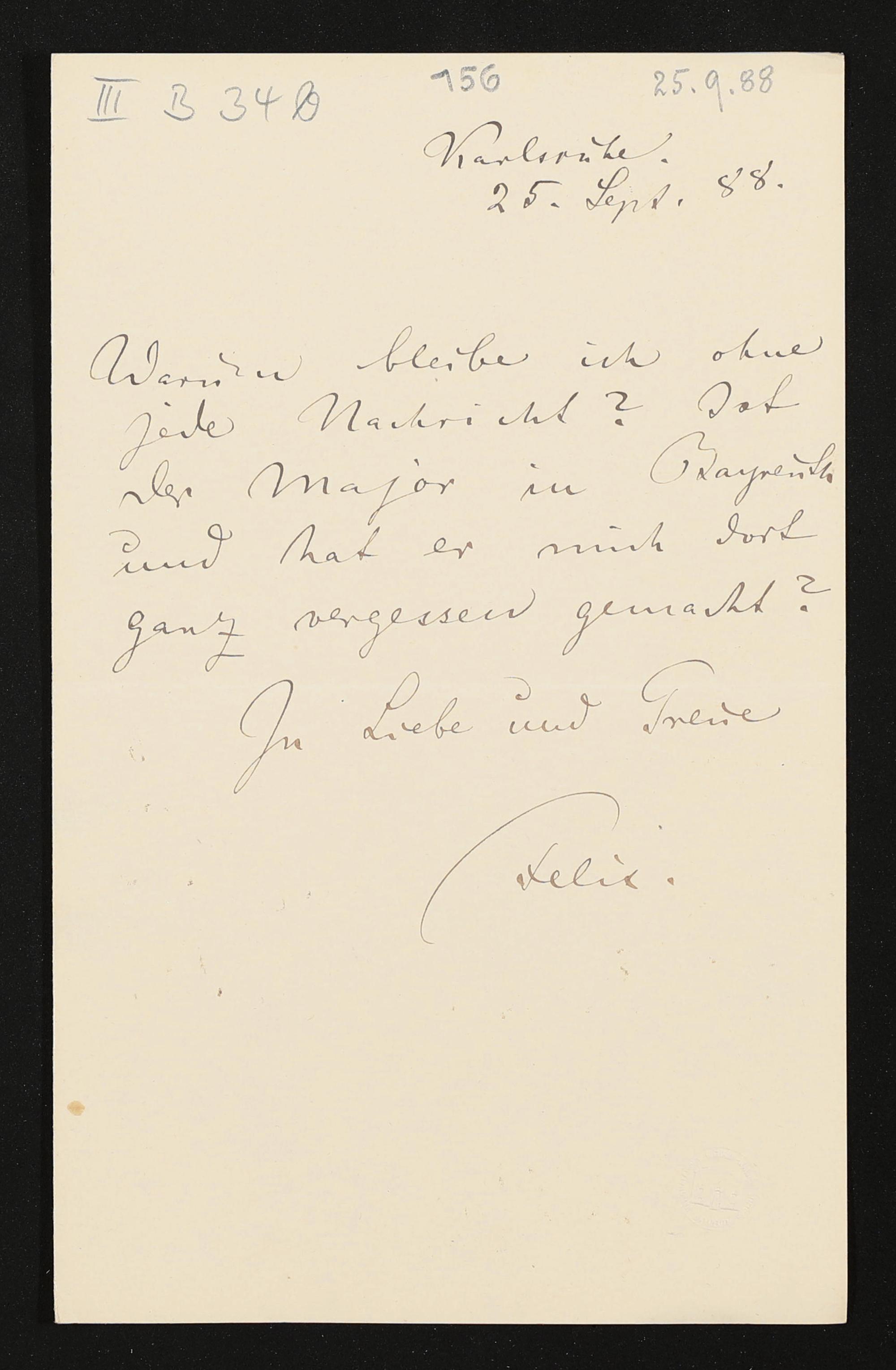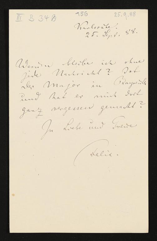 eigenhändiger Brief von Felix Mottl an Cosima Wagner