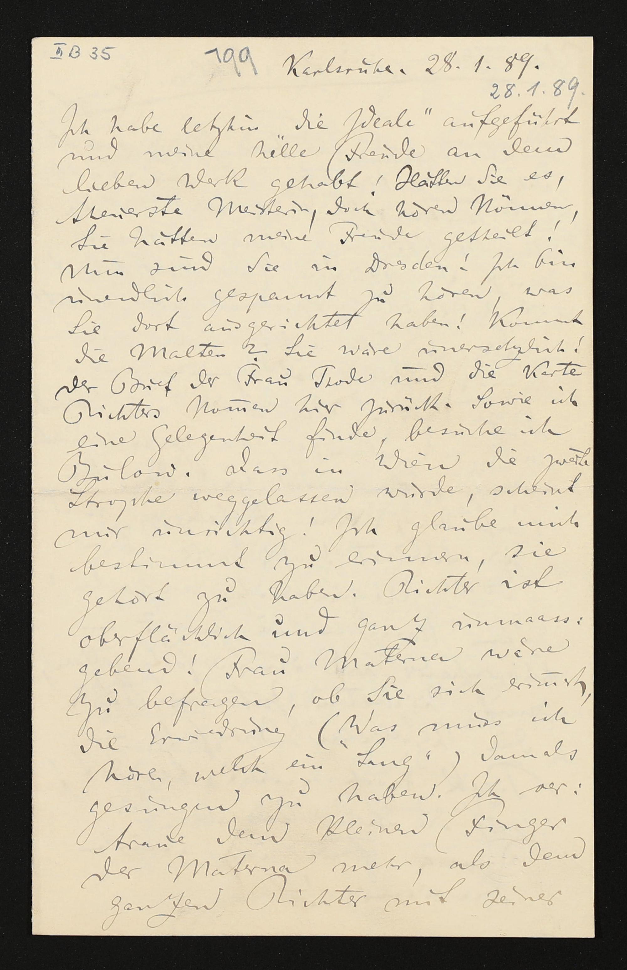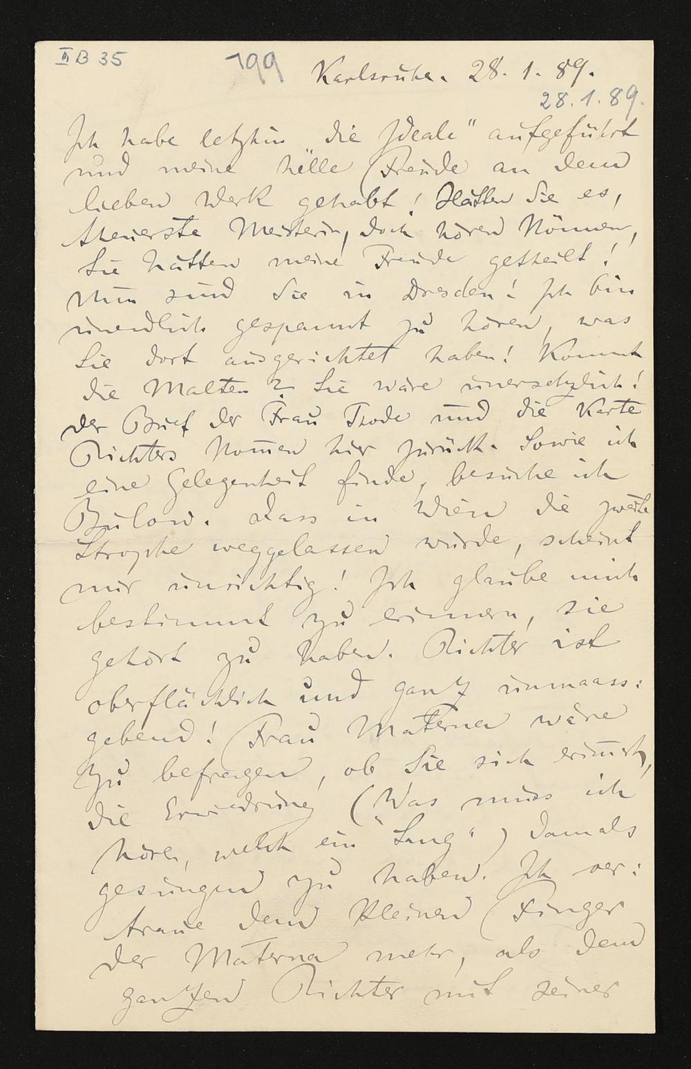 eigenhändiger Brief von Felix Mottl an Cosima Wagner