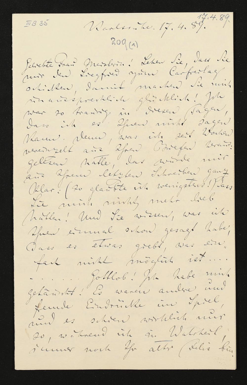 eigenhändiger Brief von Felix Mottl an Cosima Wagner