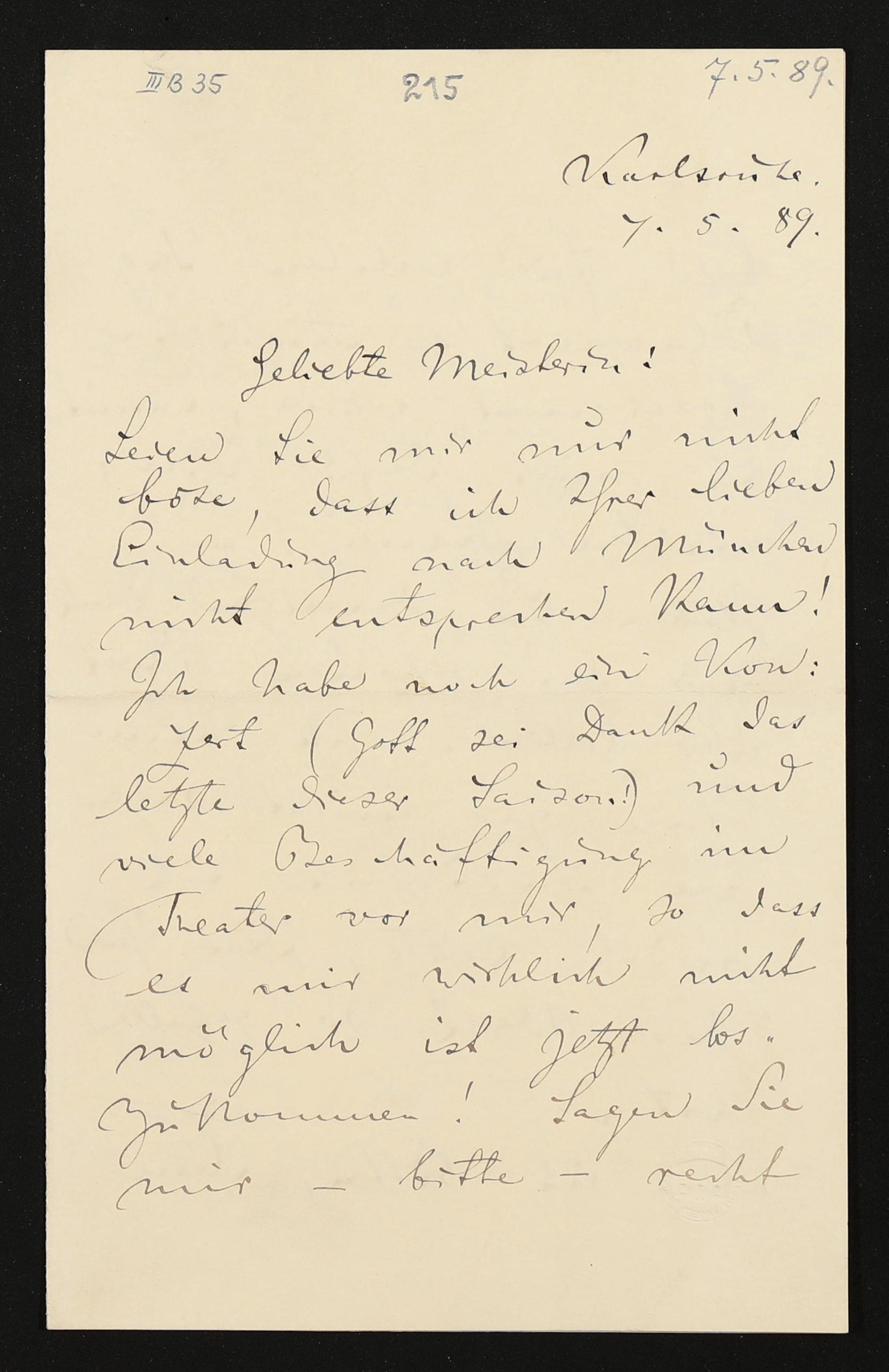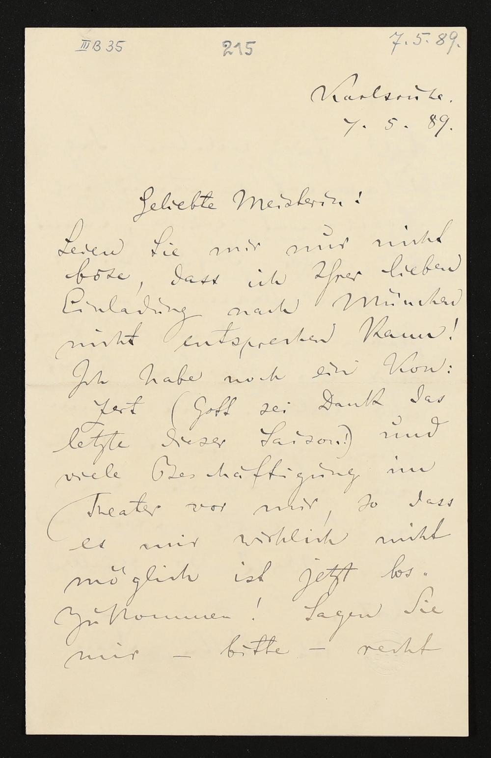 eigenhändiger Brief von Felix Mottl an Cosima Wagner