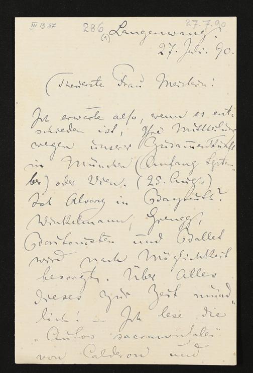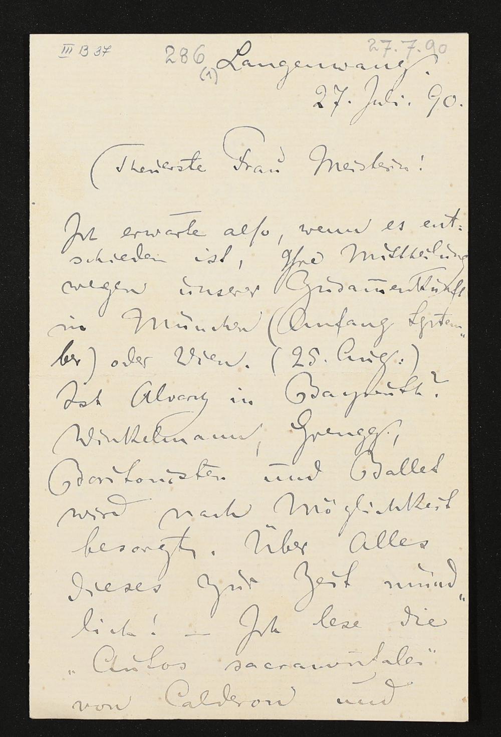 eigenhändiger Brief von Felix Mottl an Cosima Wagner