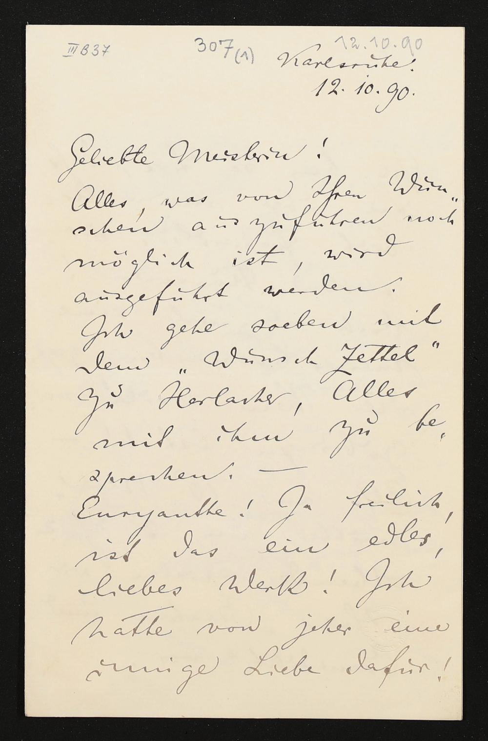 eigenhändiger Brief von Felix Mottl an Cosima Wagner
