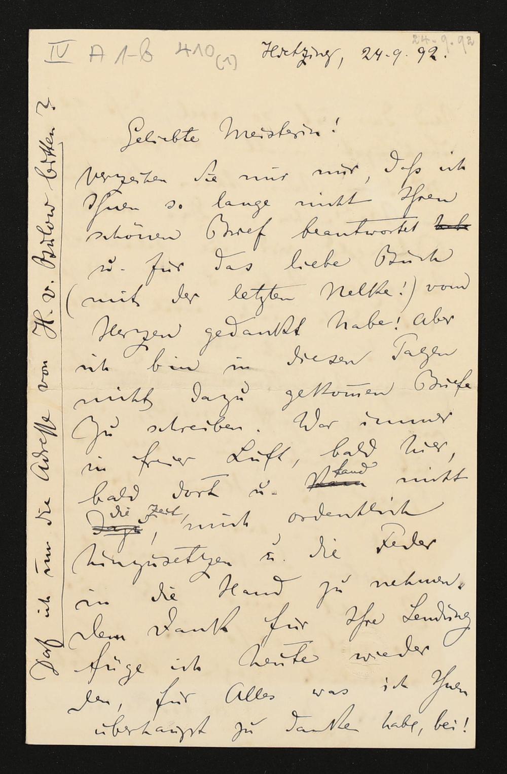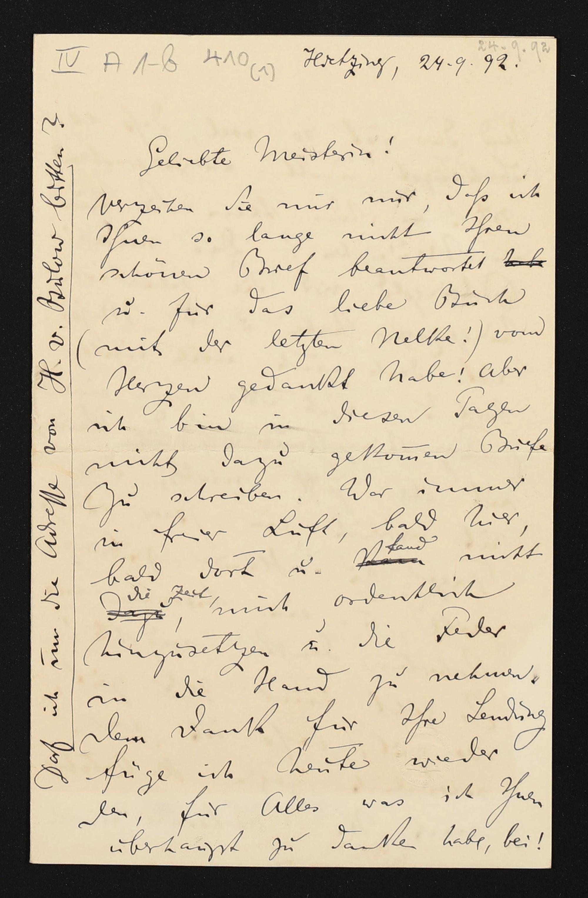 eigenhändiger Brief von Felix Mottl an Cosima Wagner