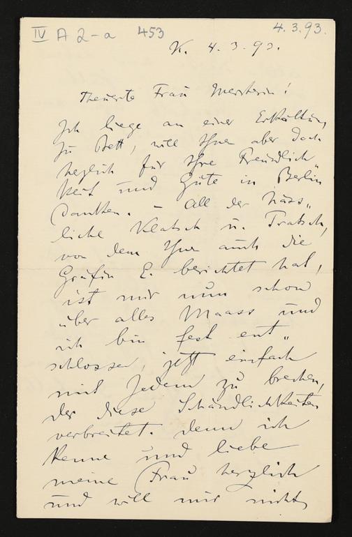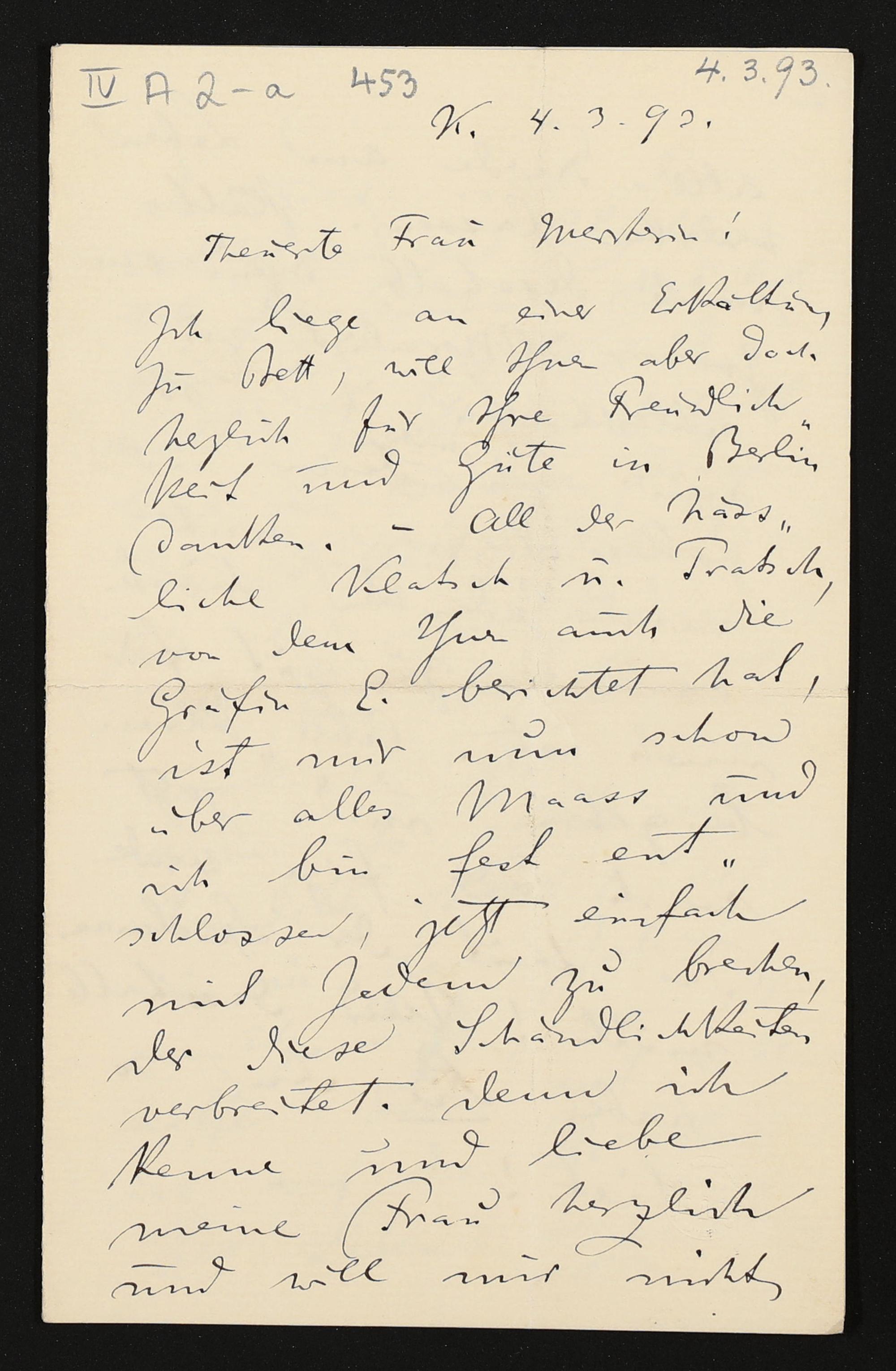 eigenhändiger Brief von Felix Mottl an Cosima Wagner