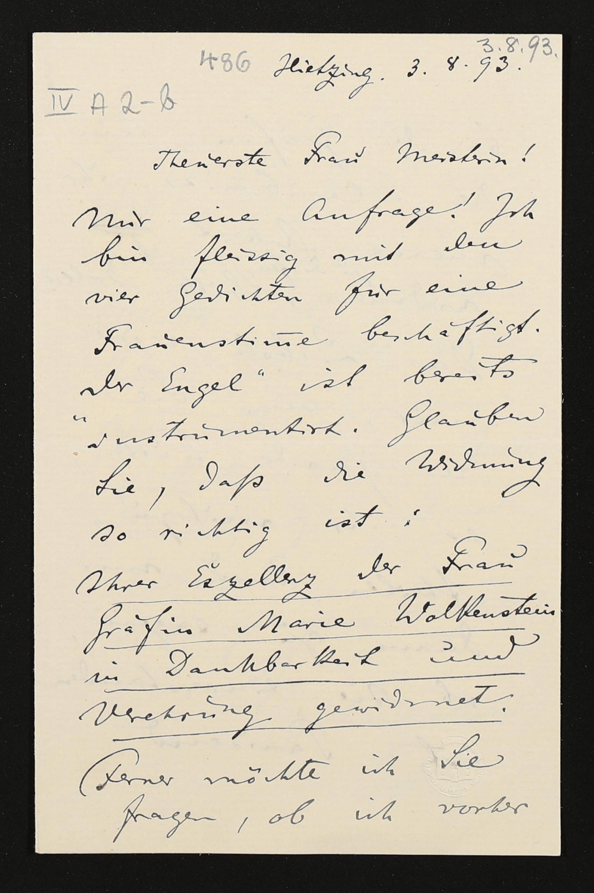 eigenhändiger Brief von Felix Mottl an Cosima Wagner