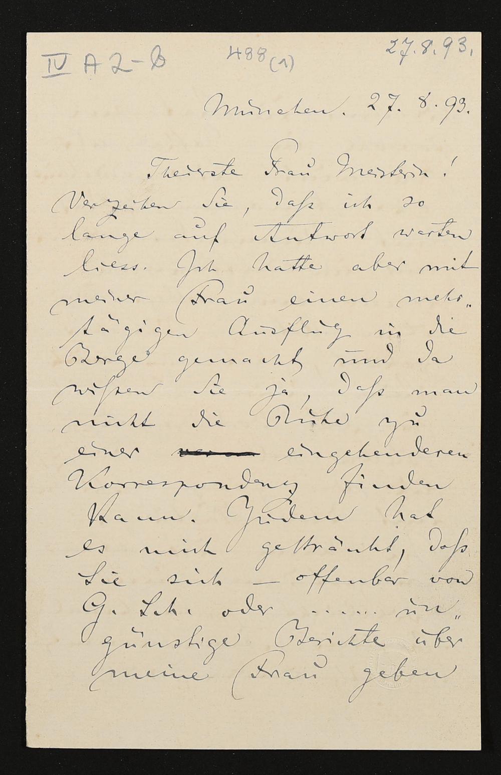 eigenhändiger Brief von Felix Mottl an Cosima Wagner