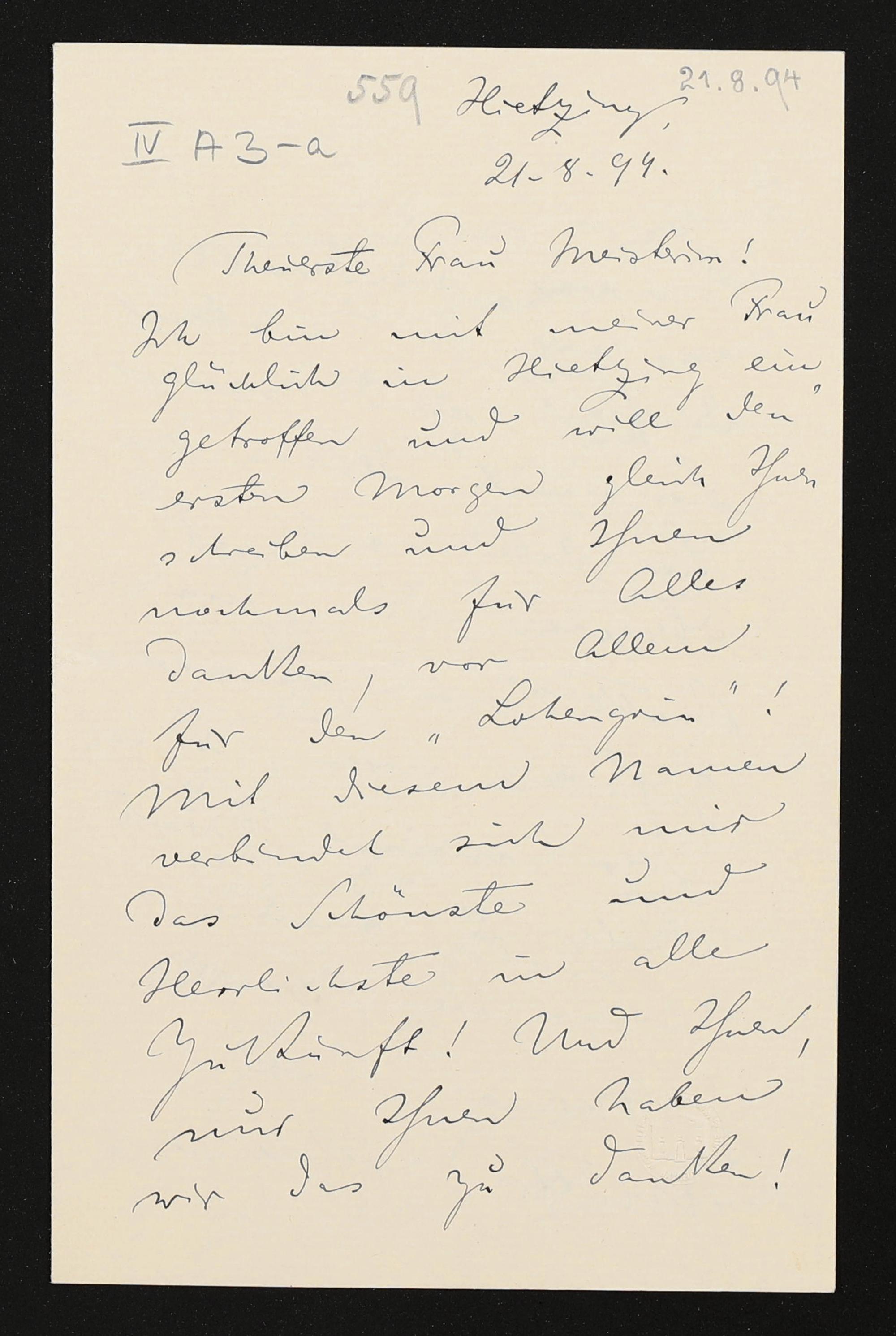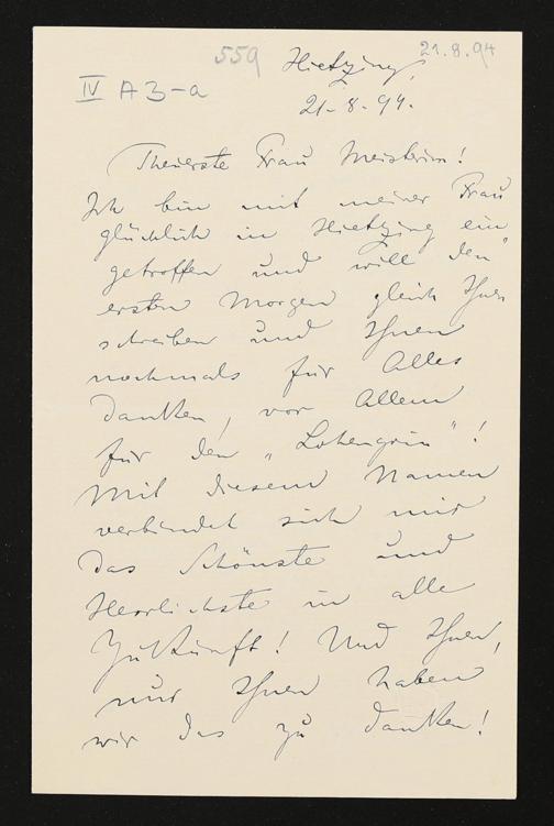 eigenhändiger Brief von Felix Mottl an Cosima Wagner