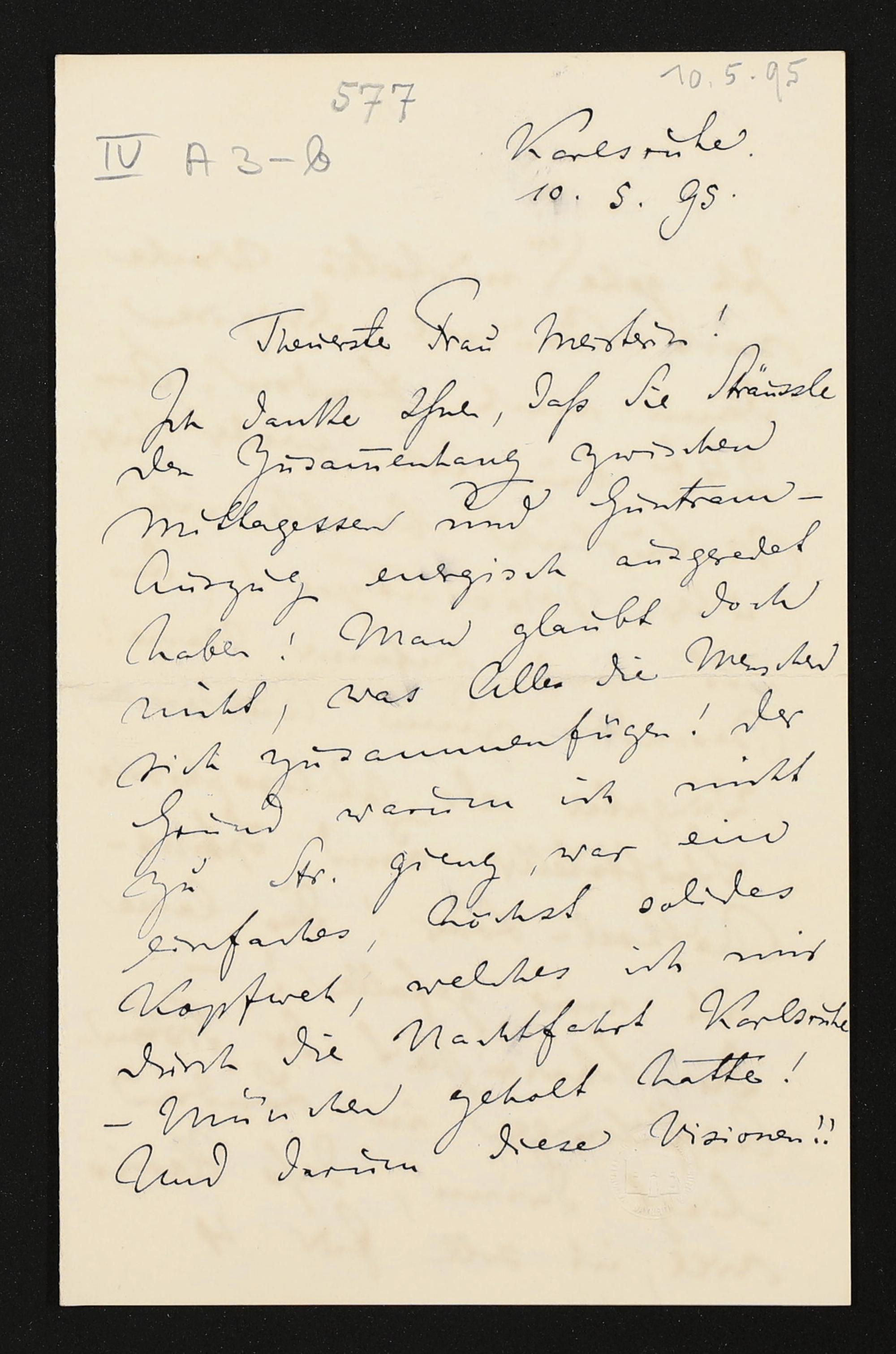 eigenhändiger Brief von Felix Mottl an Cosima Wagner