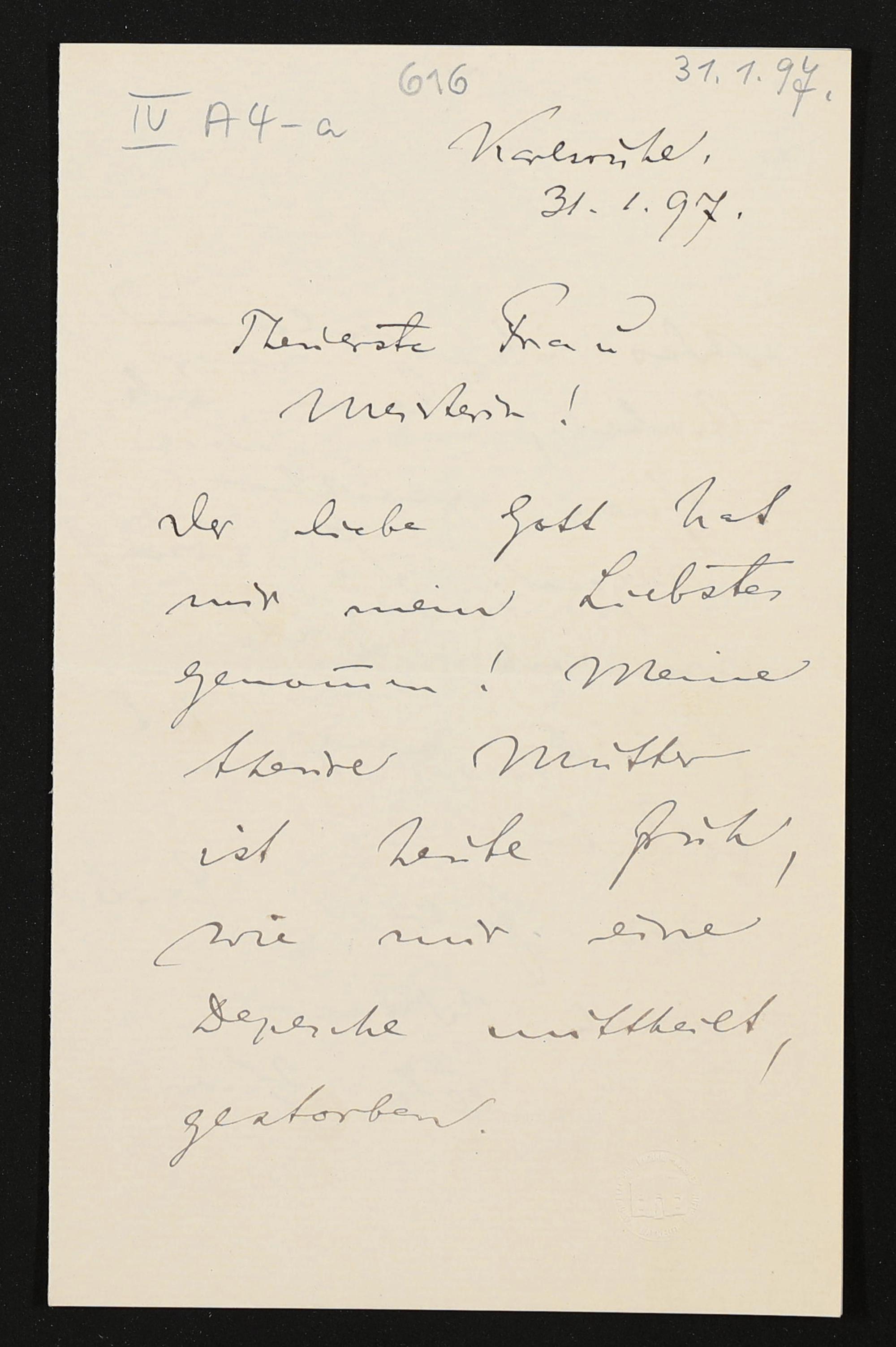 eigenhändiger Brief von Felix Mottl an Cosima Wagner