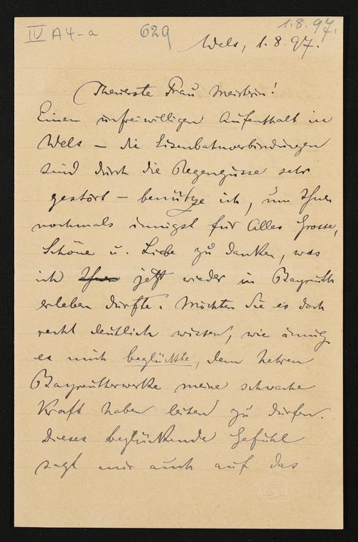 eigenhändiger Brief von Felix Mottl an Cosima Wagner