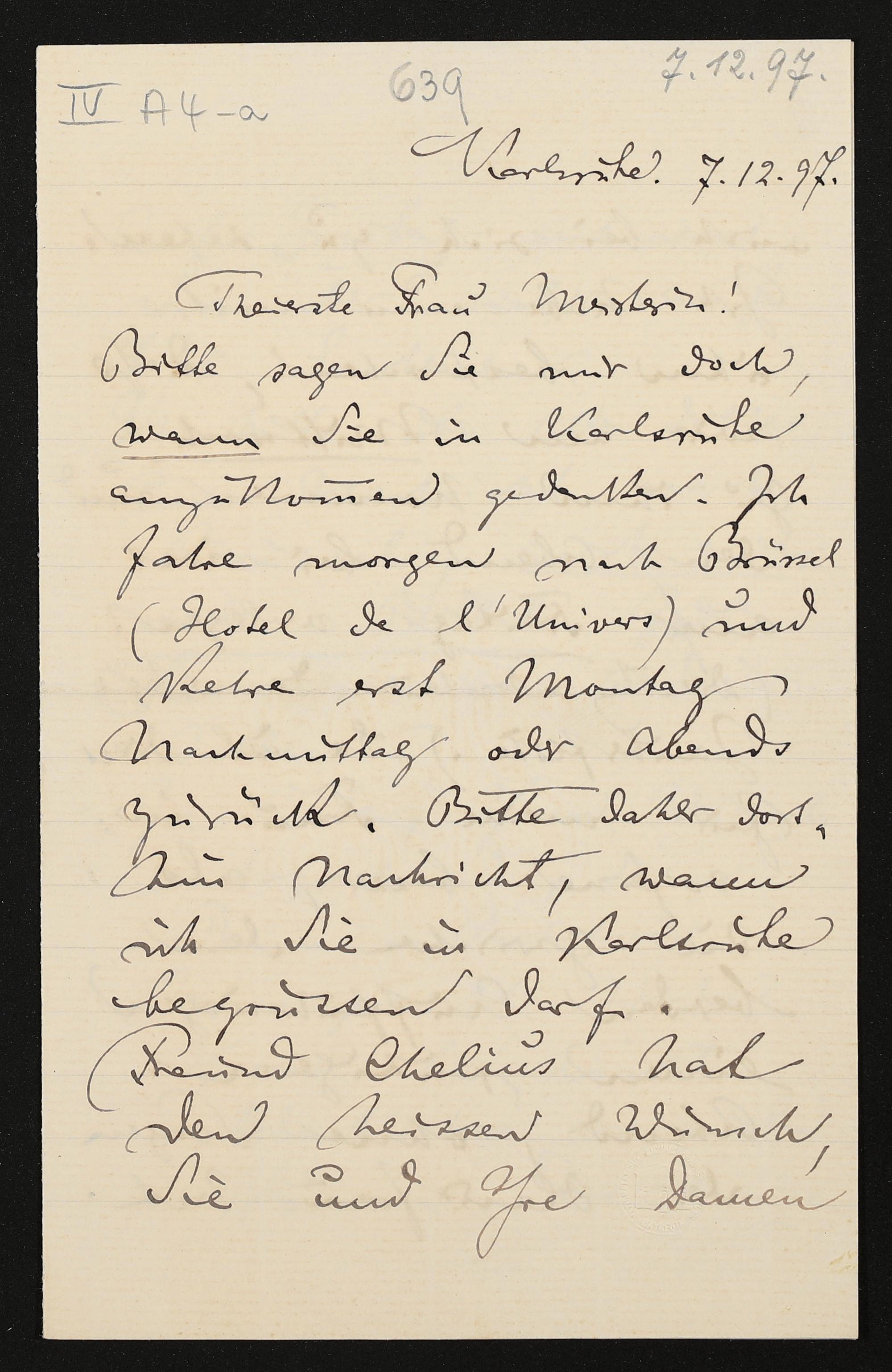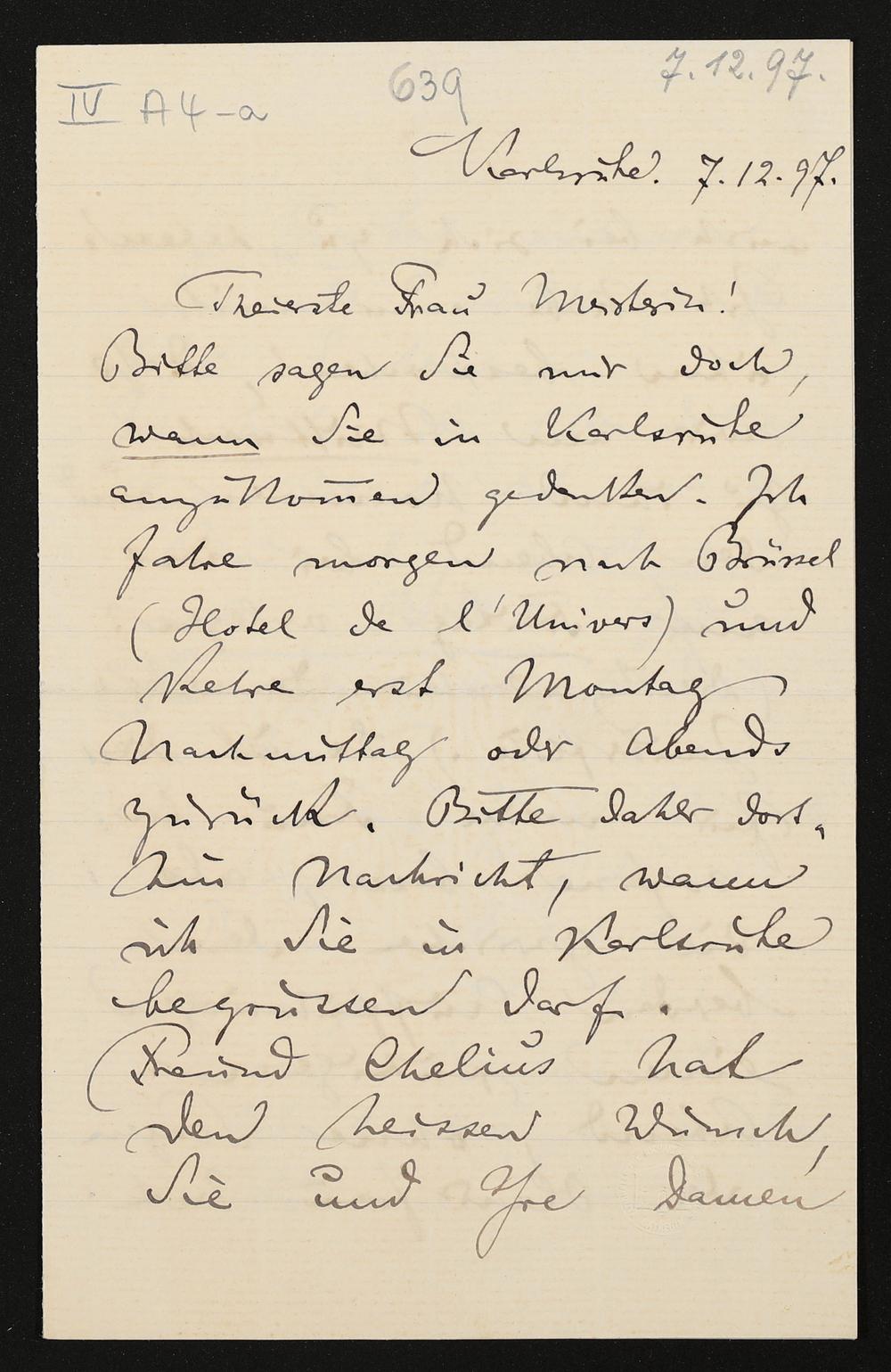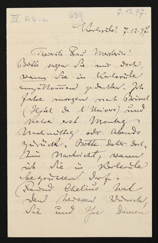 eigenhändiger Brief von Felix Mottl an Cosima Wagner