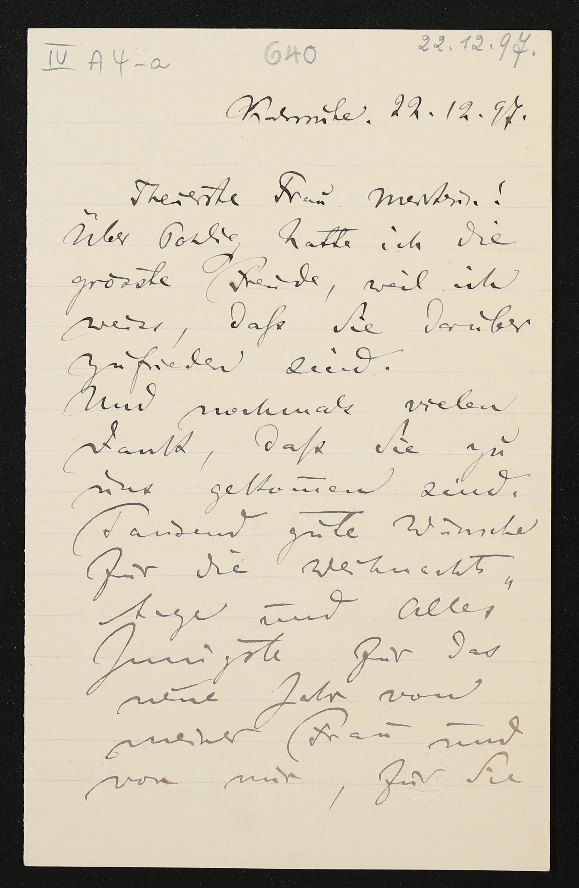 eigenhändiger Brief von Felix Mottl an Cosima Wagner