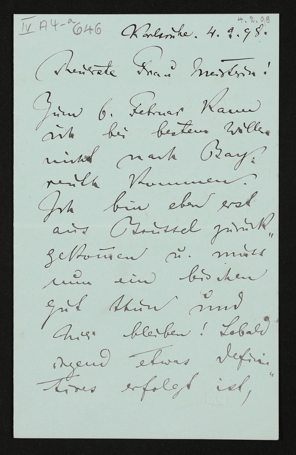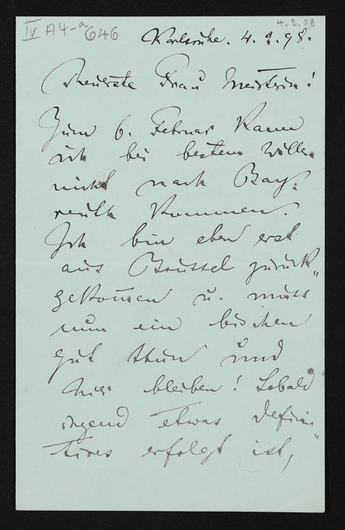 eigenhändiger Brief von Felix Mottl an Cosima Wagner