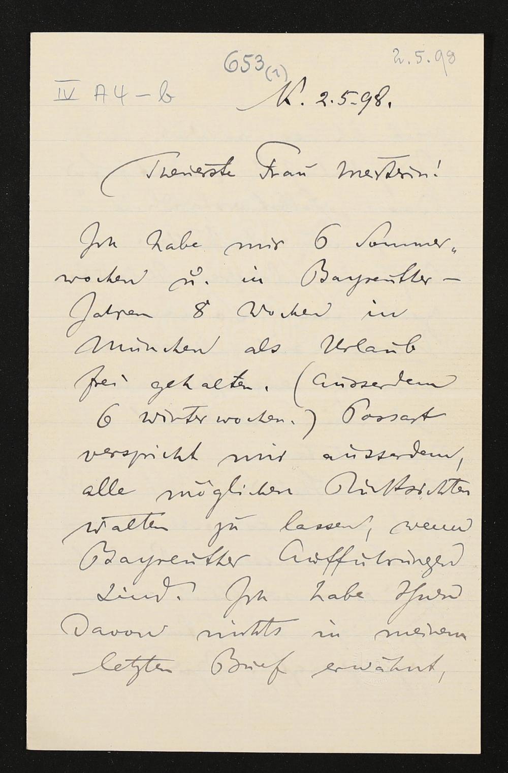 eigenhändiger Brief von Felix Mottl an Cosima Wagner