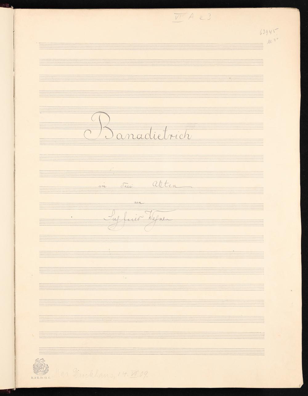 Banadietrich : in drei Akten, eigenhändige Partitur von Siegfried Wagner