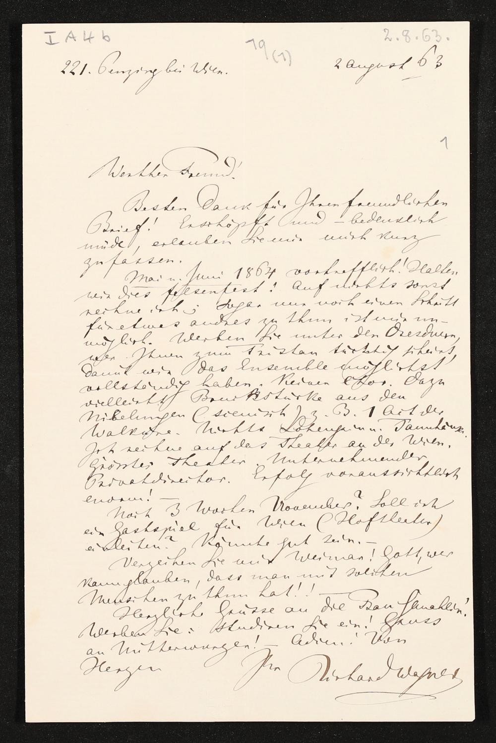 eigenhändiger Brief von Richard Wagner an Ludwig Schnorr von Carolsfeld