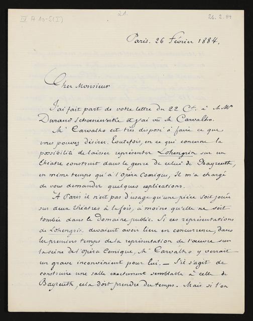 eigenhändiger Brief von Charles Nuitter mutmaßlich an Adolf von Gross