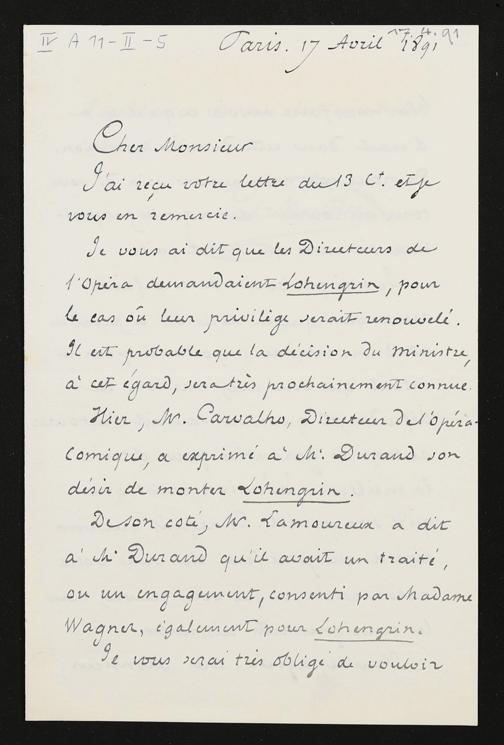 eigenhändiger Brief von Charles Nuitter an Adolf von Gross