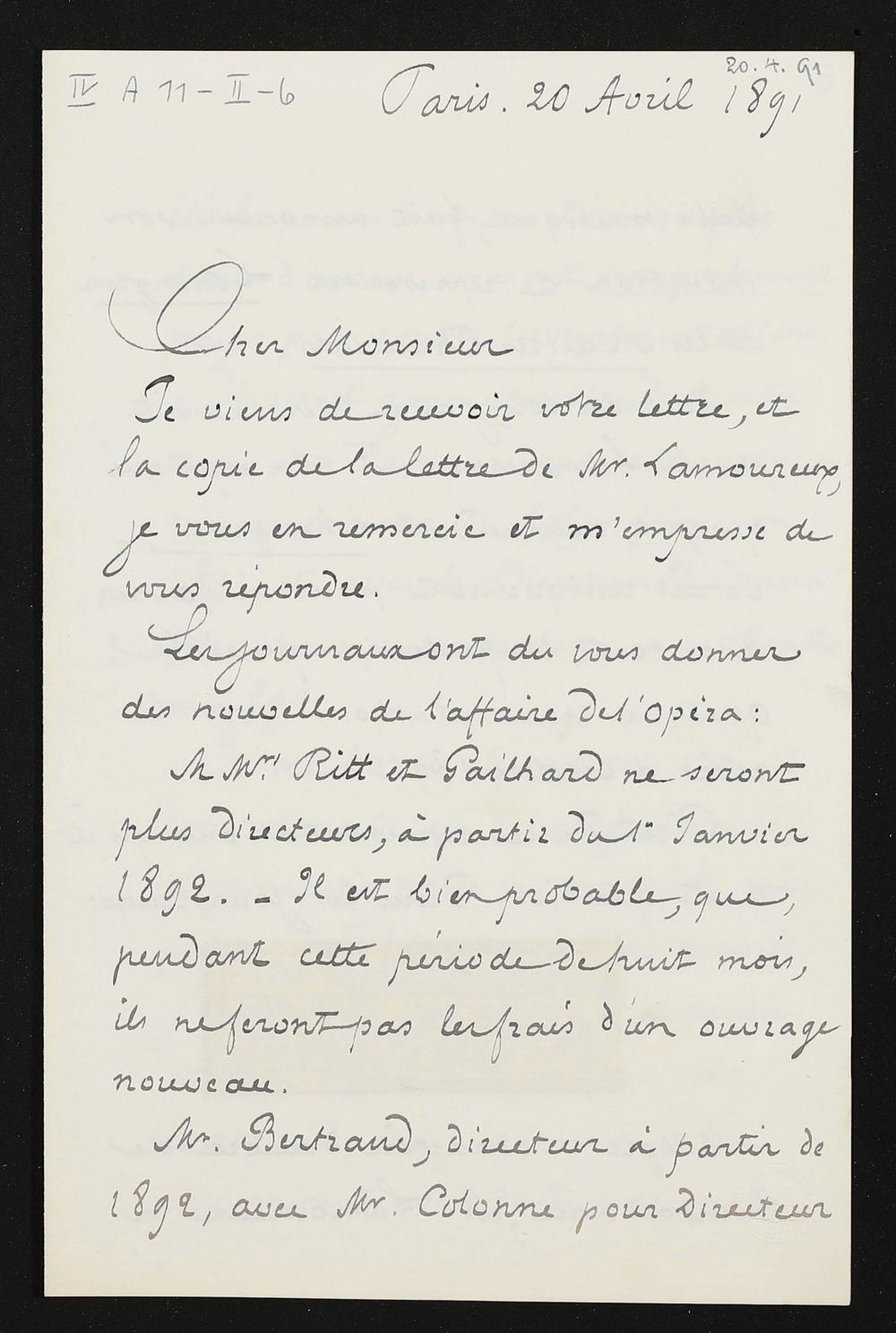 eigenhändiger Brief von Charles Nuitter an Adolf von Gross