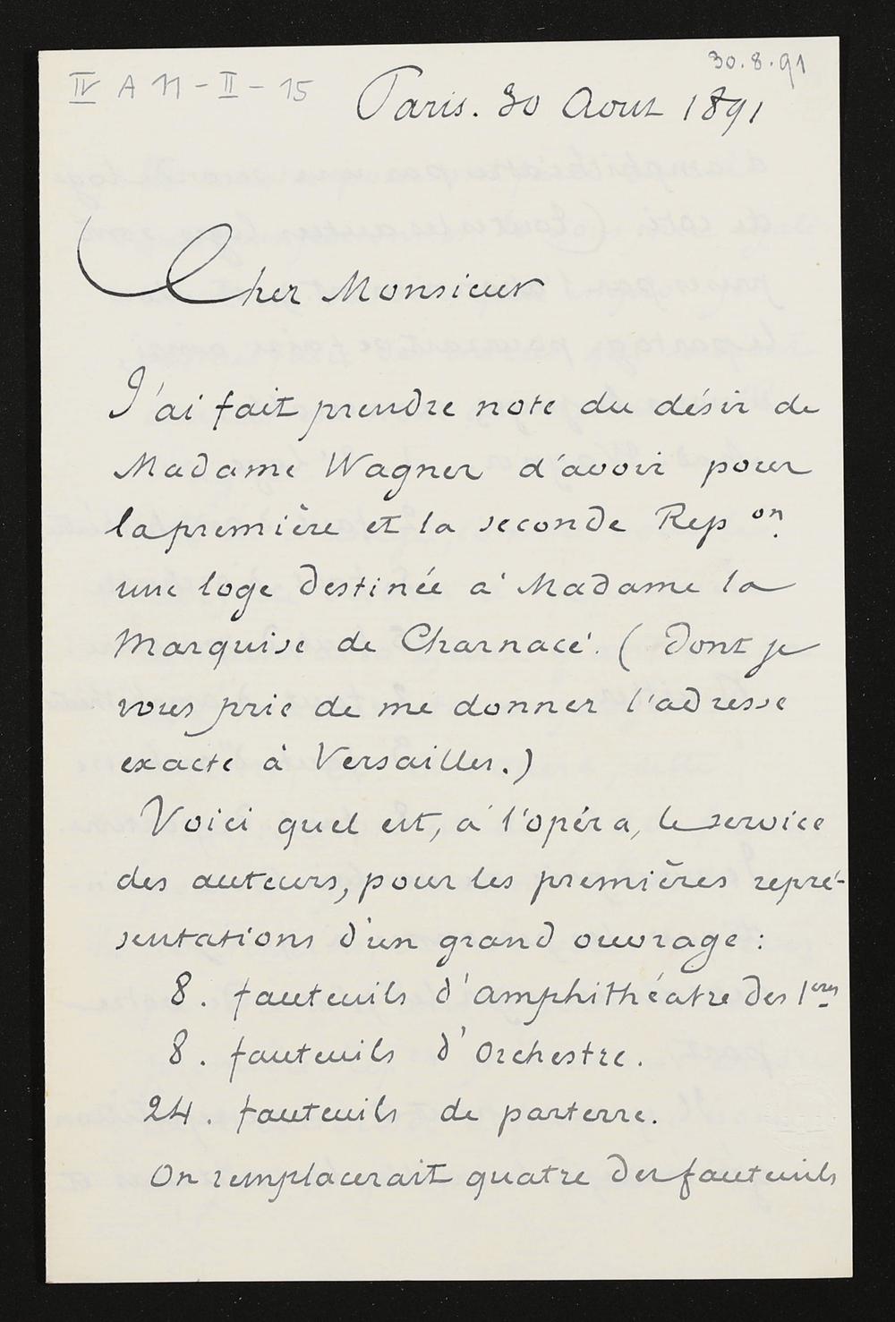 eigenhändiger Brief von Charles Nuitter an Adolf von Gross