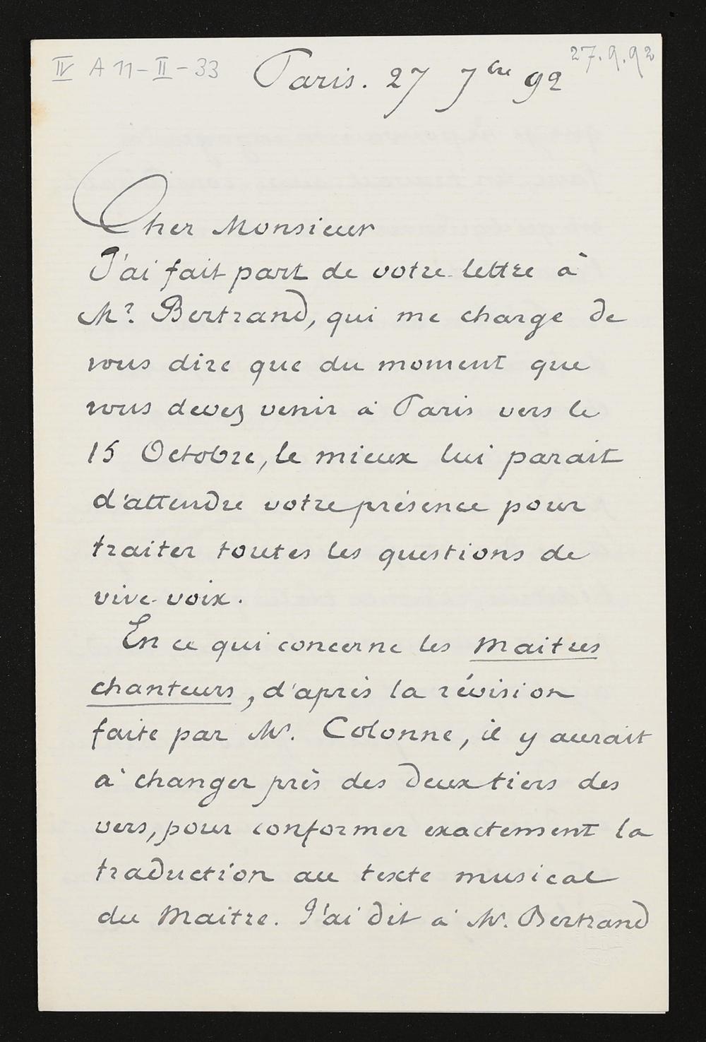 eigenhändiger Brief von Charles Nuitter an Adolf von Gross