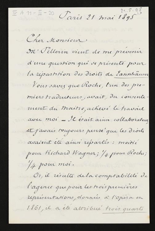 eigenhändiger Brief von Charles Nuitter an Adolf von Gross