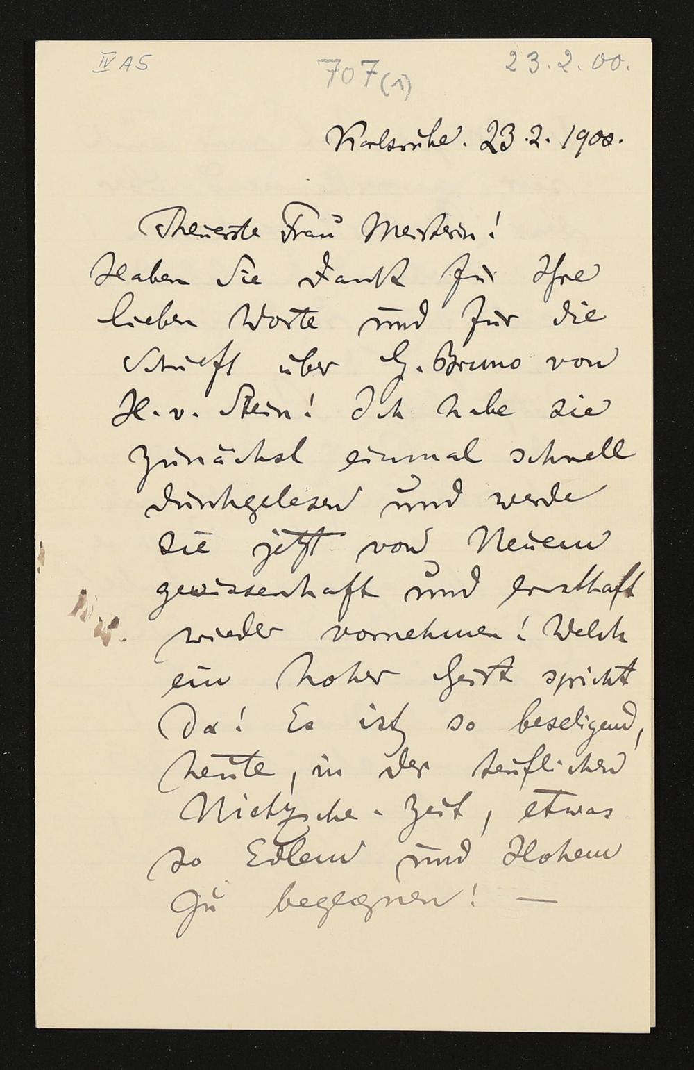 eigenhändiger Brief von Felix Mottl an Cosima Wagner