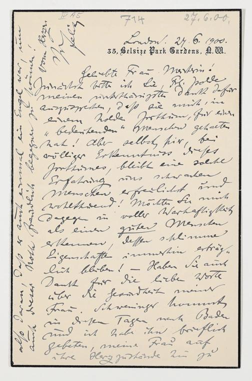 eigenhändiger Brief von Felix Mottl an Cosima Wagner