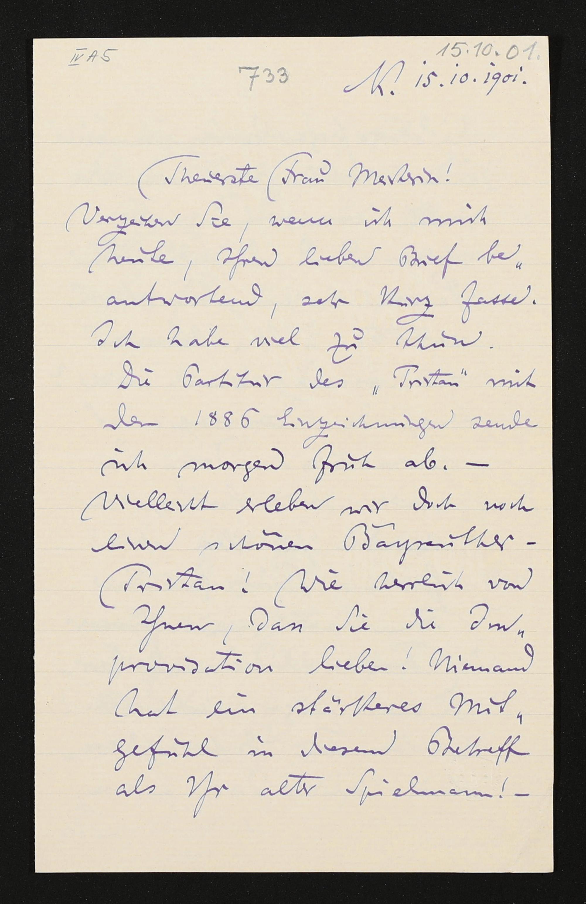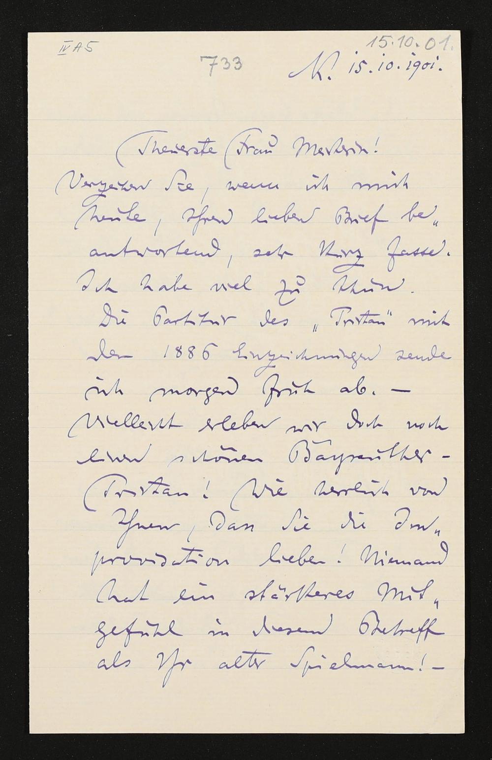 eigenhändiger Brief von Felix Mottl an Cosima Wagner