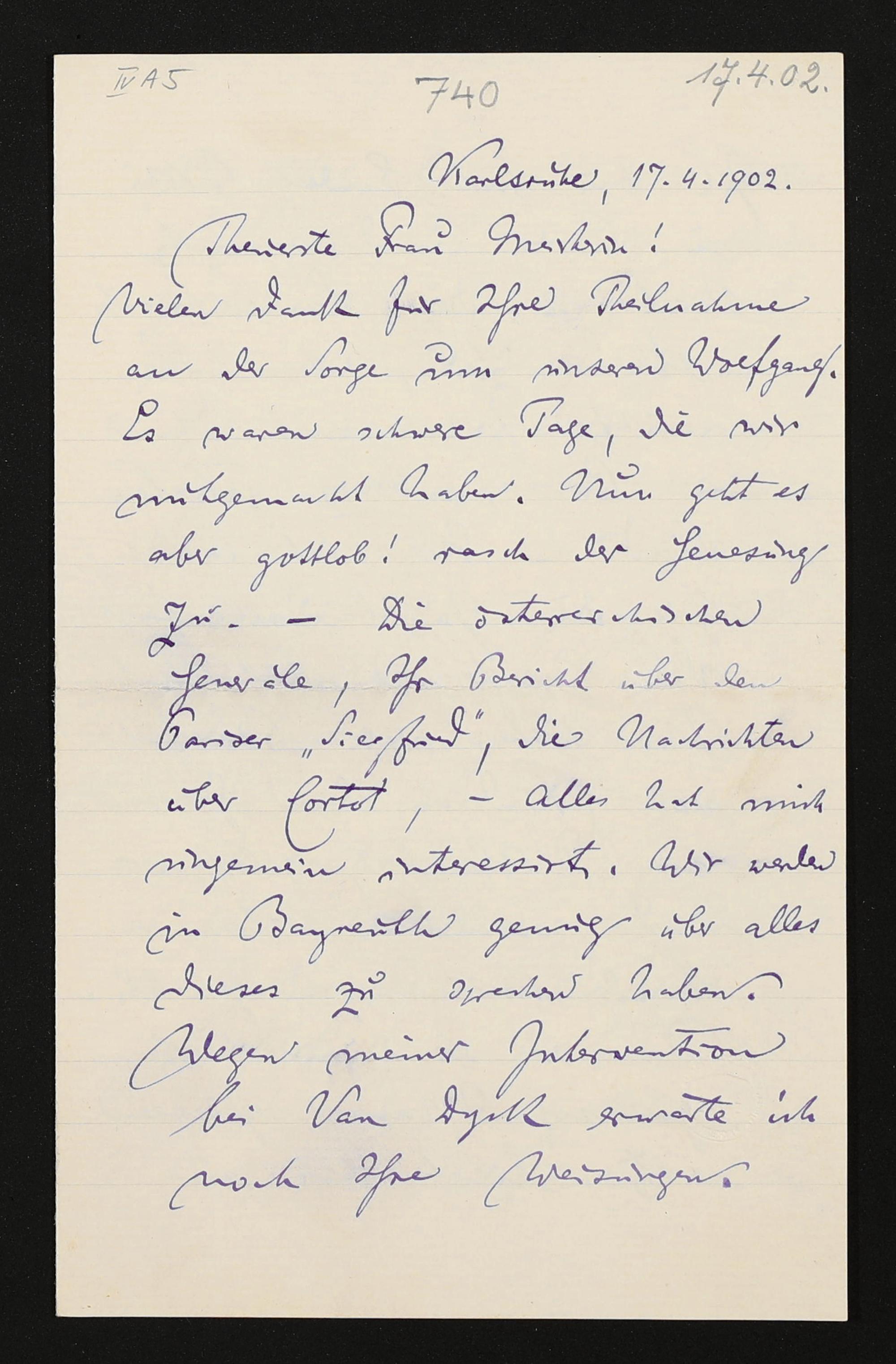 eigenhändiger Brief von Felix Mottl an Cosima Wagner