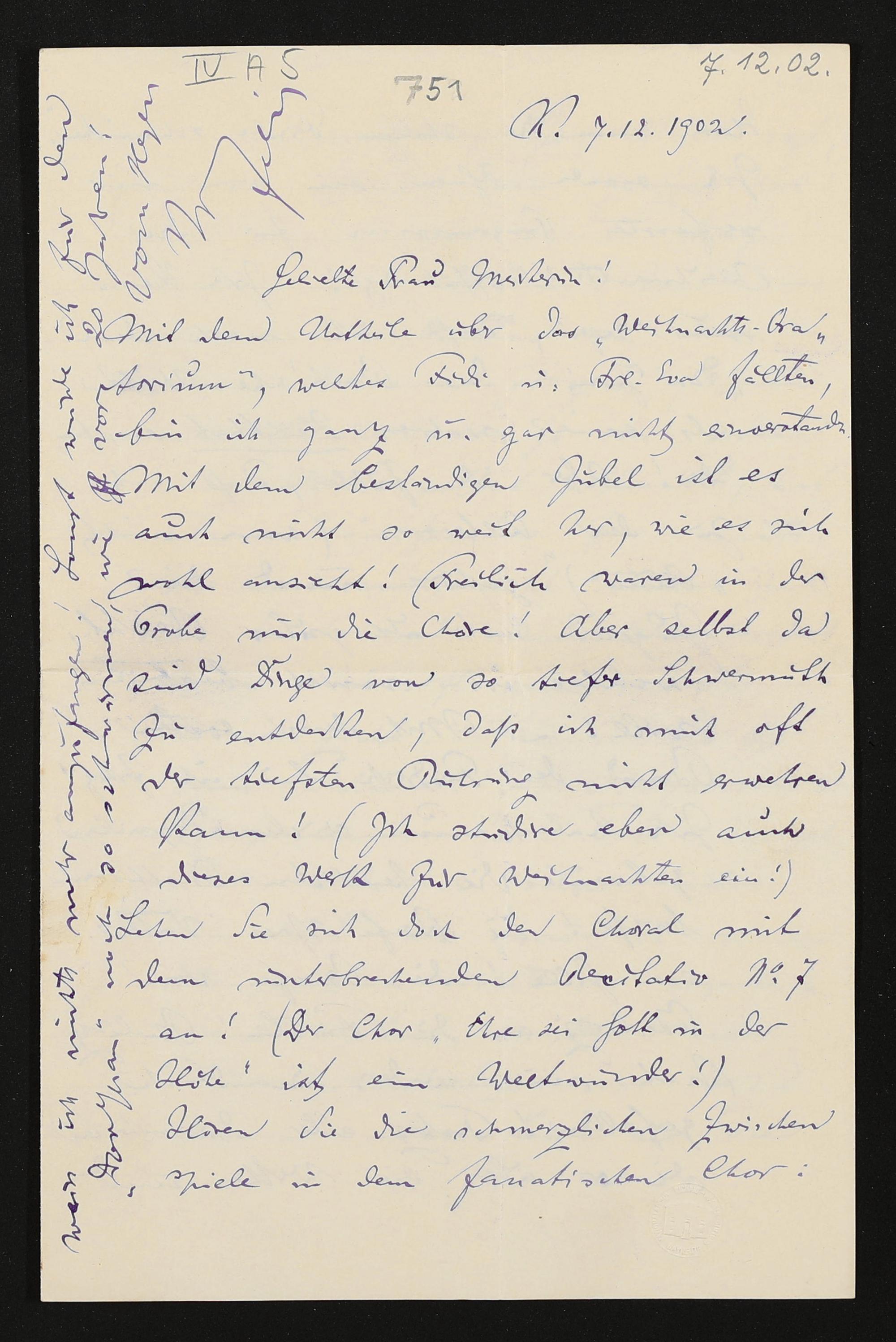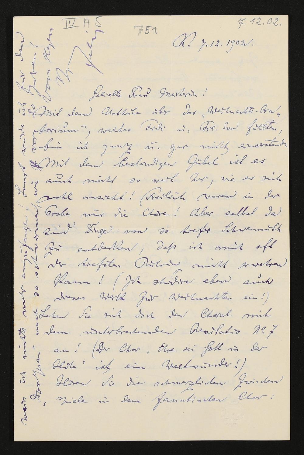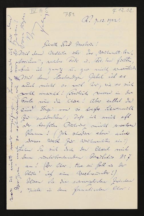 eigenhändiger Brief von Felix Mottl an Cosima Wagner