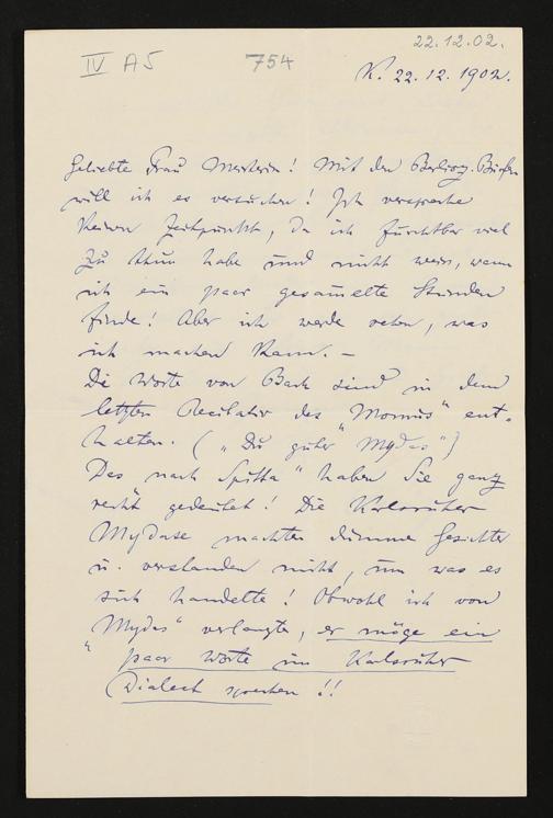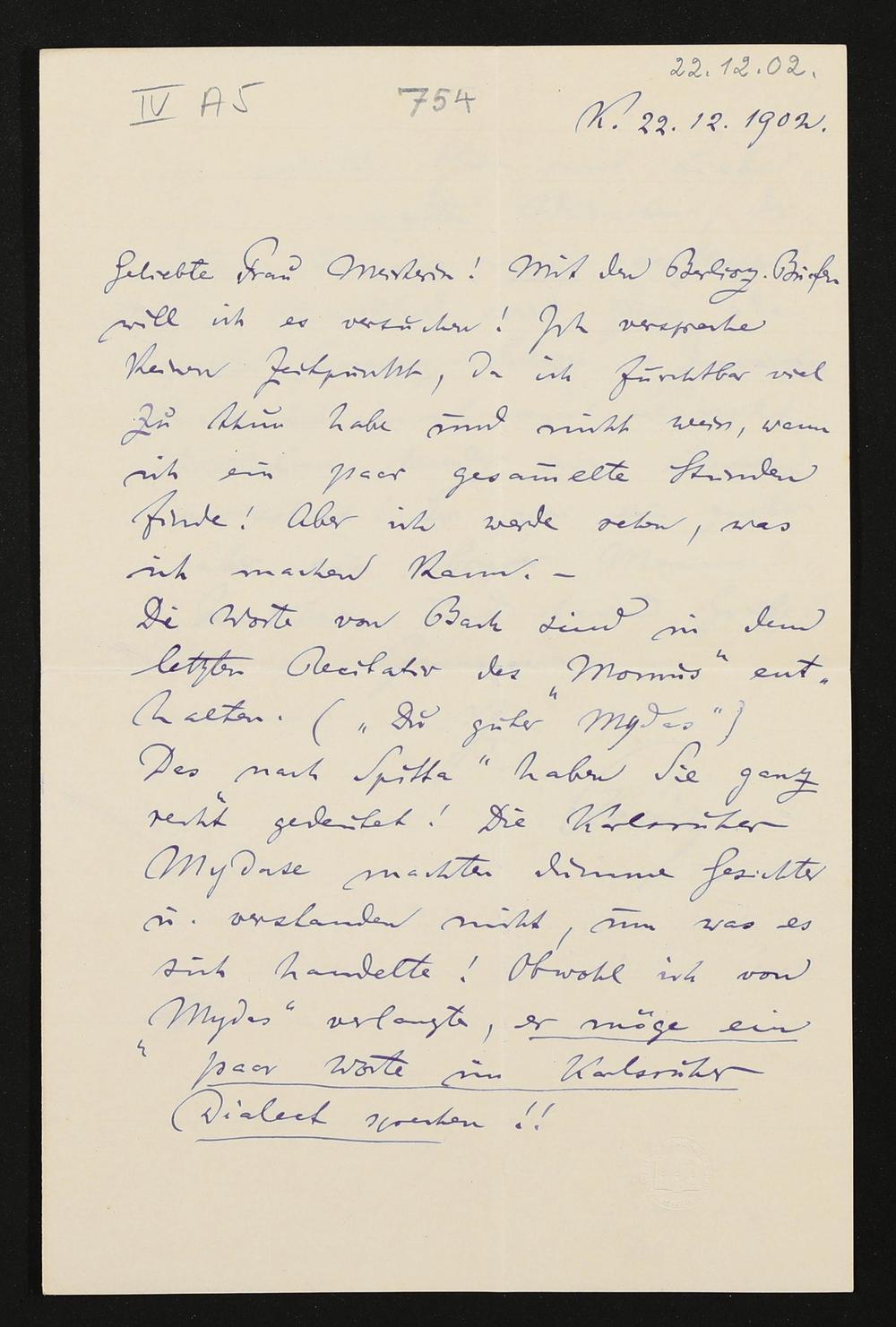 eigenhändiger Brief von Felix Mottl an Cosima Wagner