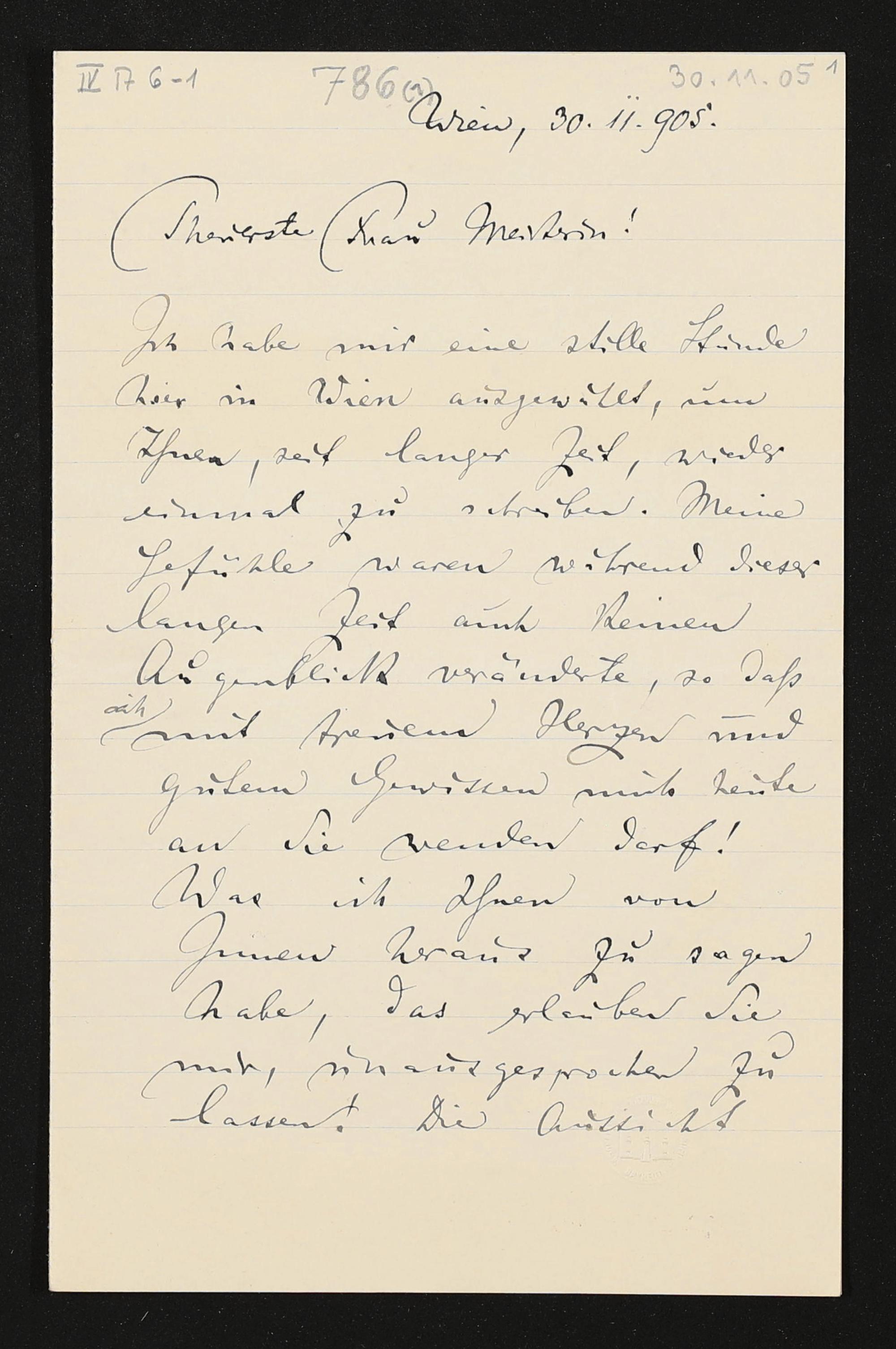 eigenhändiger Brief von Felix Mottl an Cosima Wagner