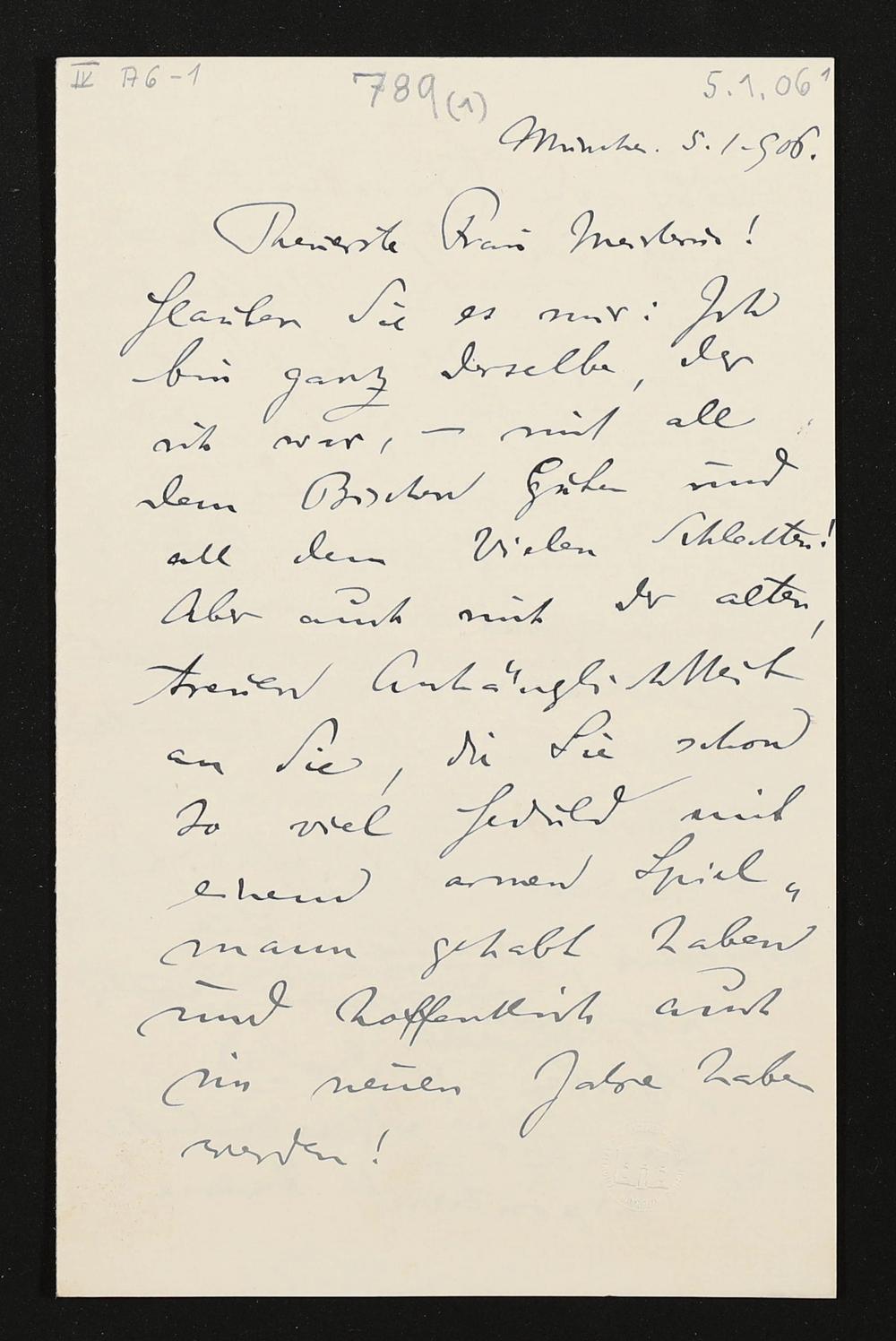 eigenhändiger Brief von Felix Mottl an Cosima Wagner