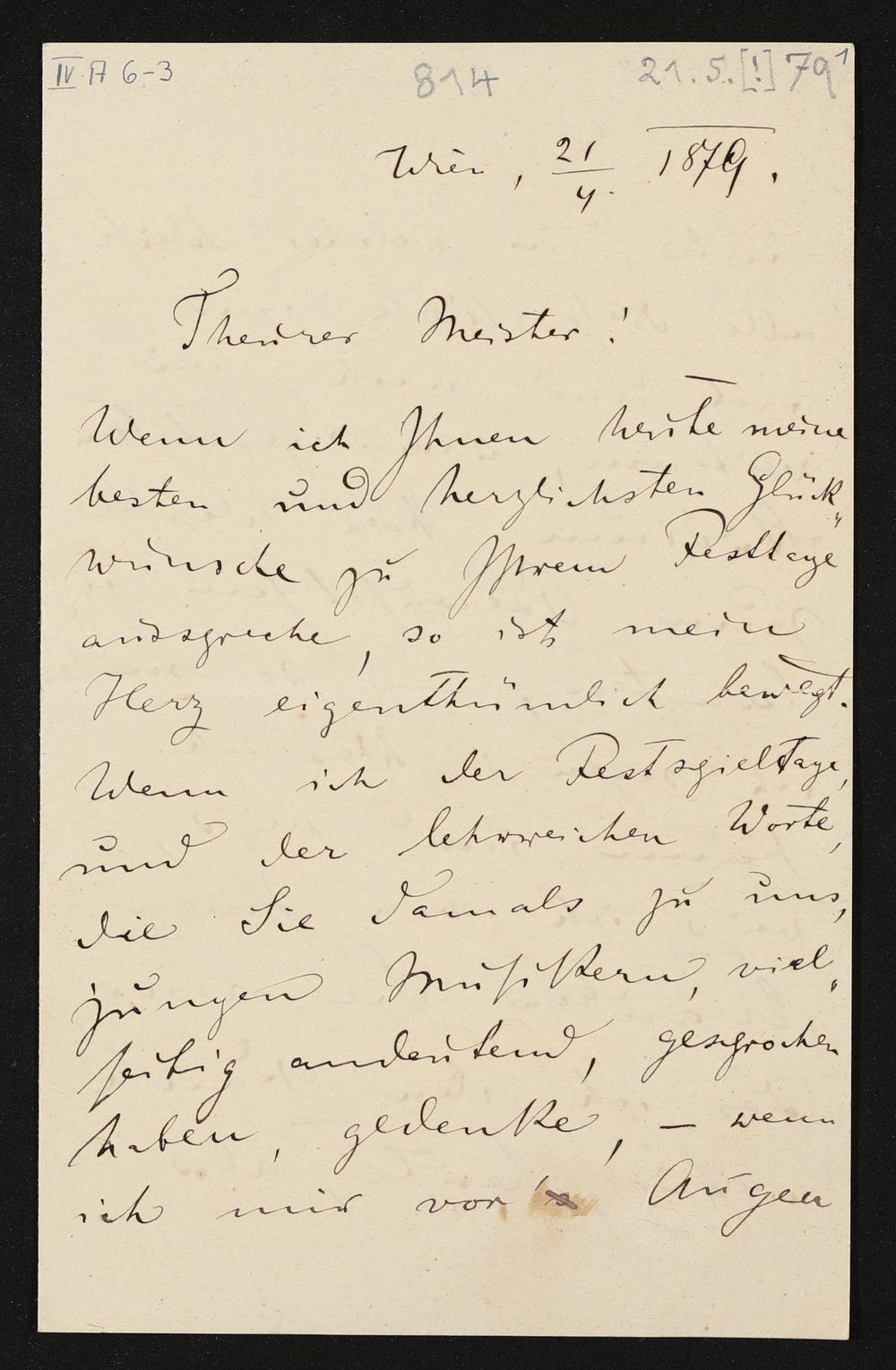 eigenhändiger Brief von Felix Mottl an Richard Wagner