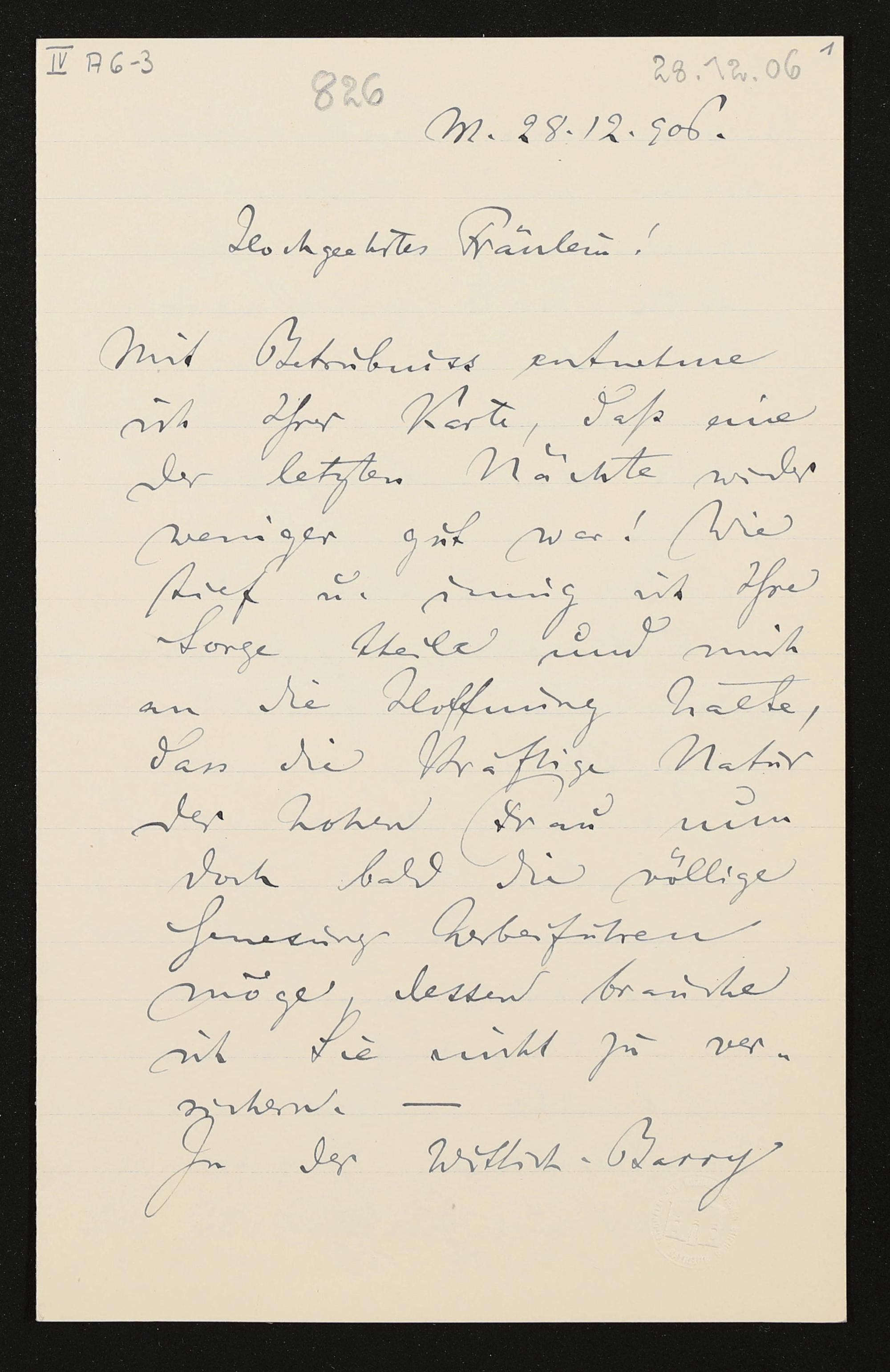eigenhändiger Brief von Felix Mottl an Eva Wagner