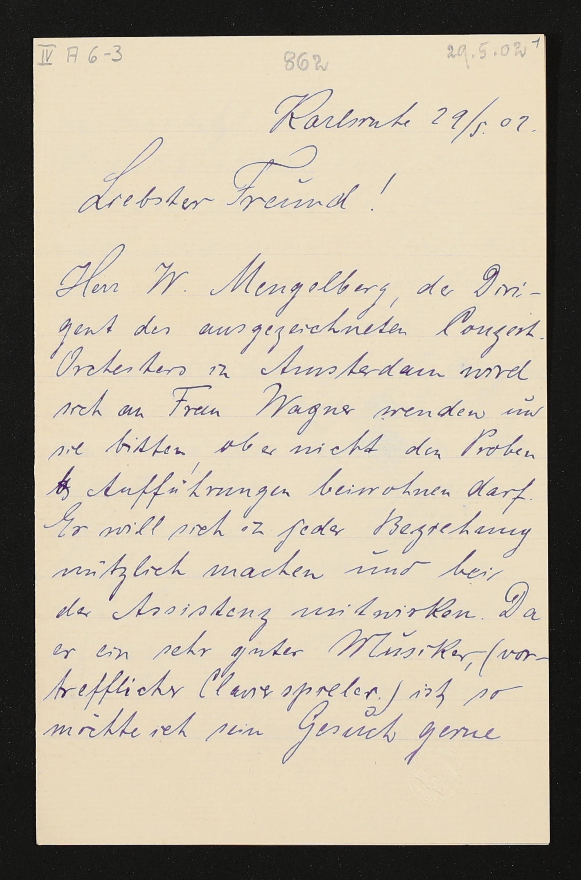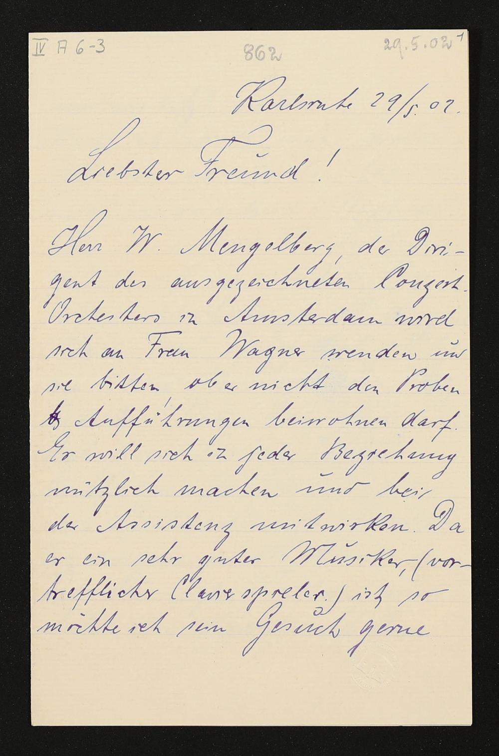 eigenhändiger Brief von Felix Mottl an Adolf von Gross