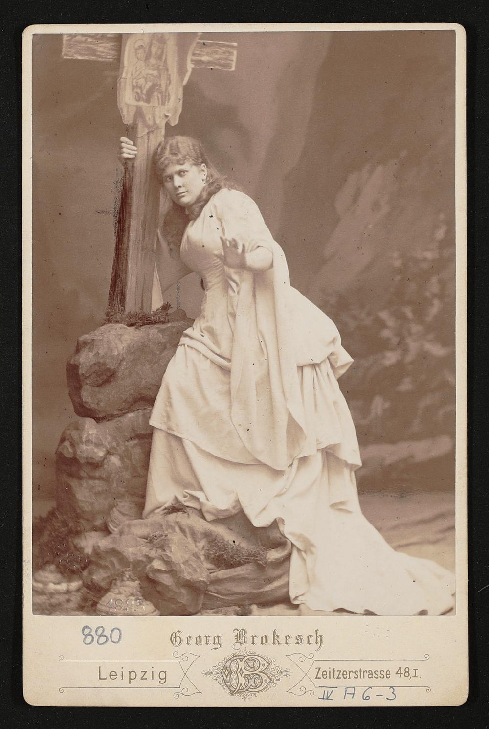 Frau ein Kreuz mit Mariendarstellung umfassend