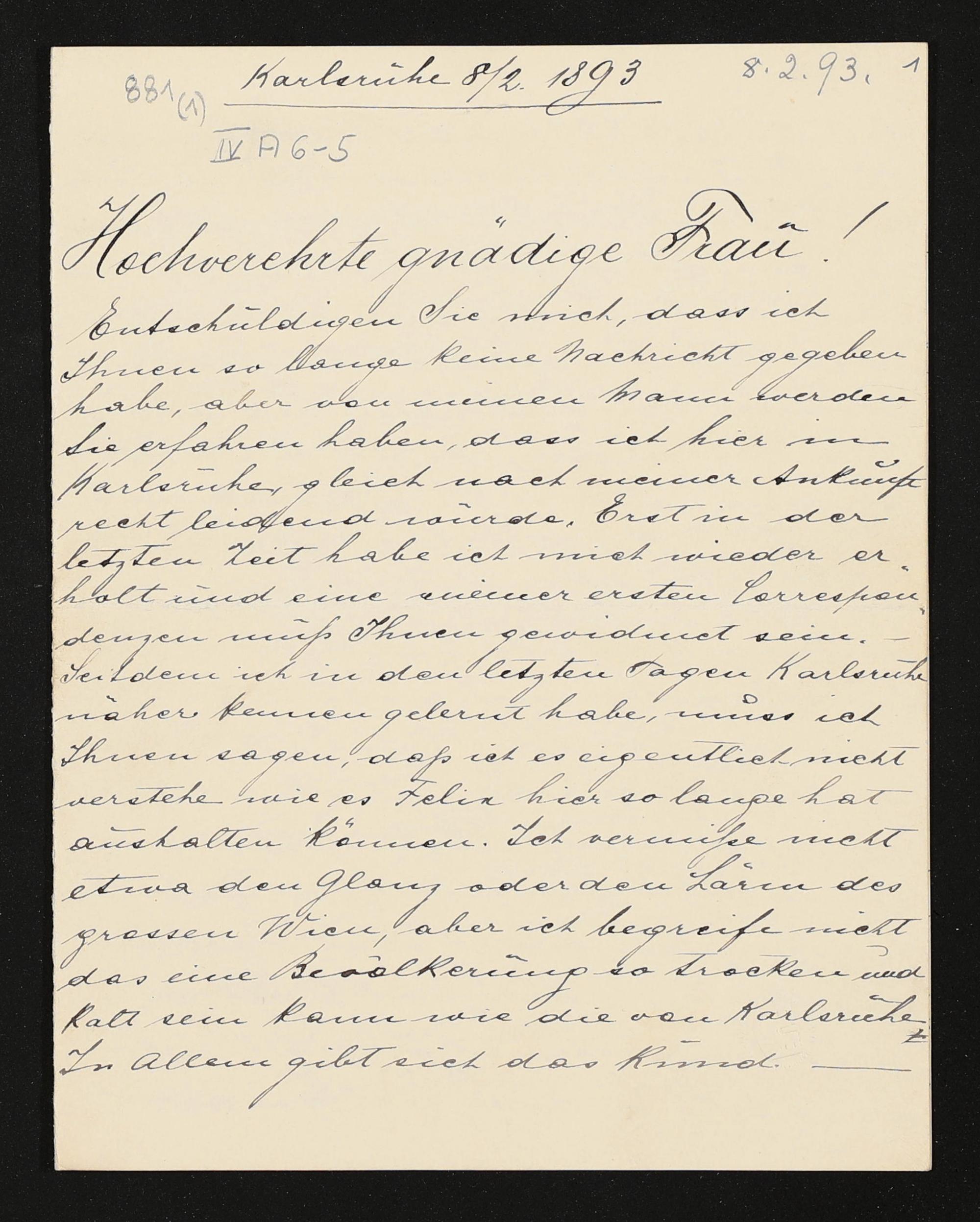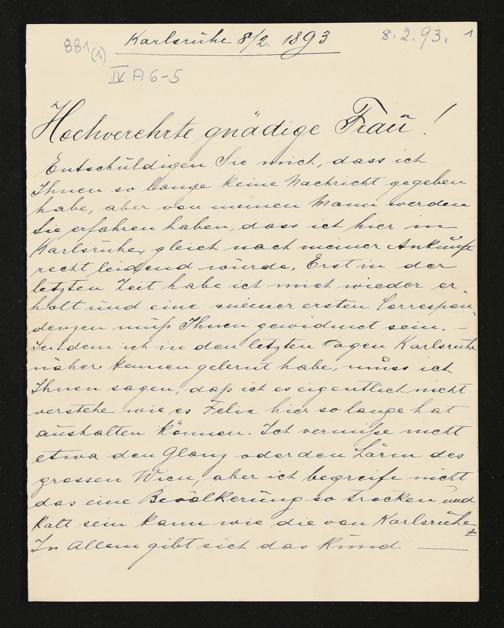 eigenhändiger Brief von Henriette Mottl an Cosima Wagner