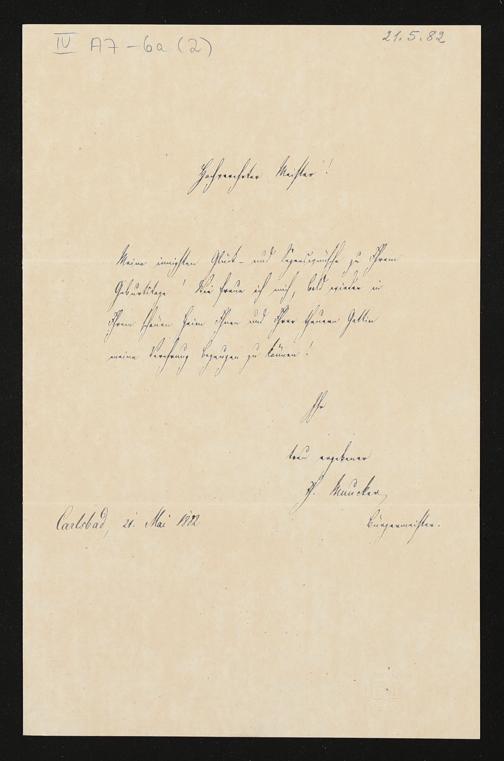 eigenhändiger Brief von Theodor von Muncker an Richard Wagner