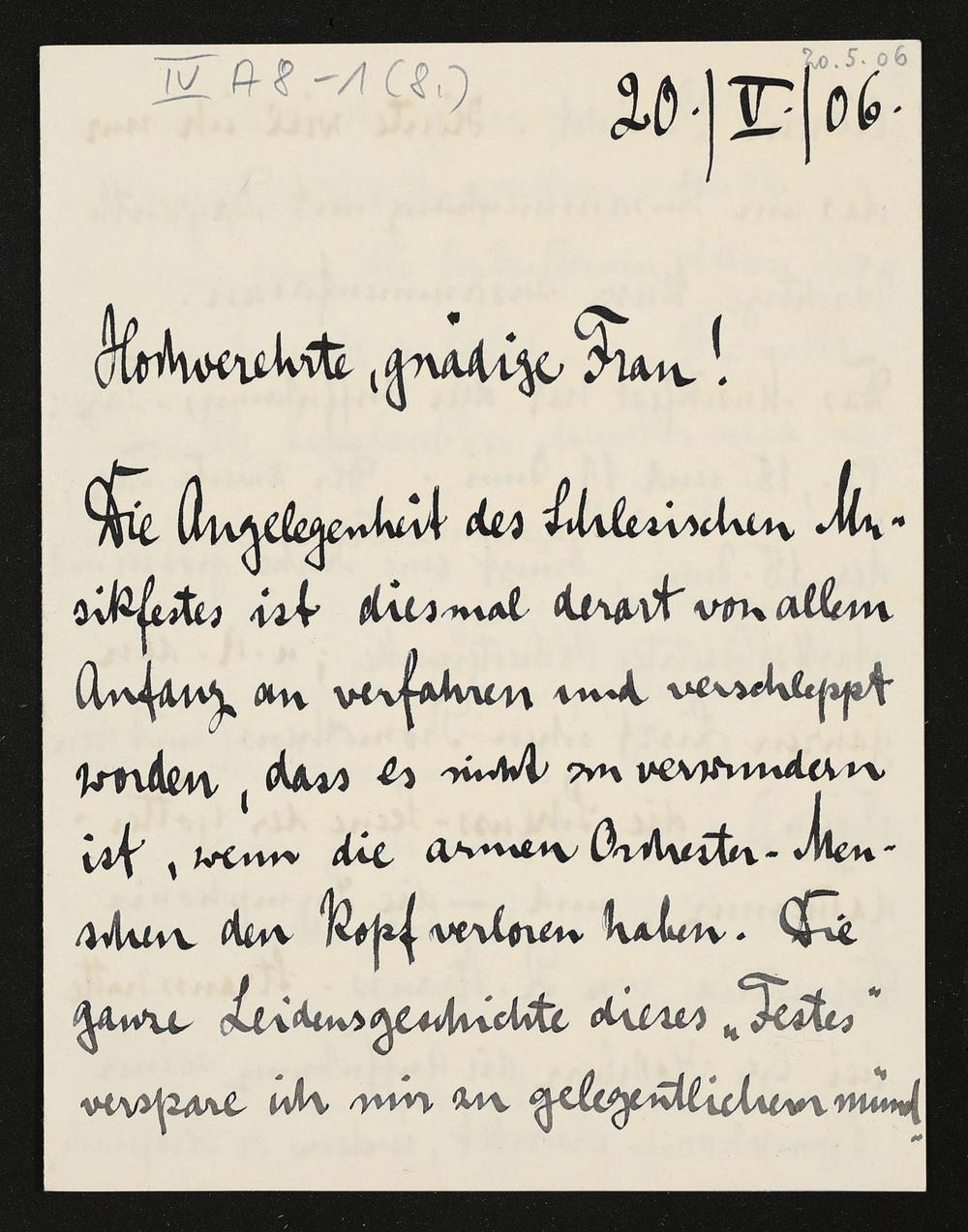 eigenhändiger Brief von Karl Muck an Cosima Wagner