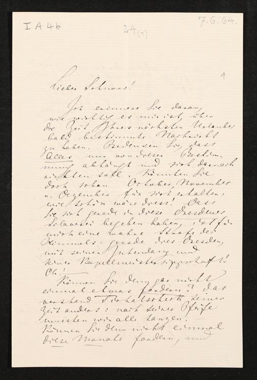 eigenhändiger Brief von Richard Wagner an Ludwig Schnorr von Carolsfeld