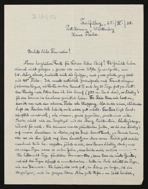eigenhändiger Brief von Karl Muck an Winifred Wagner