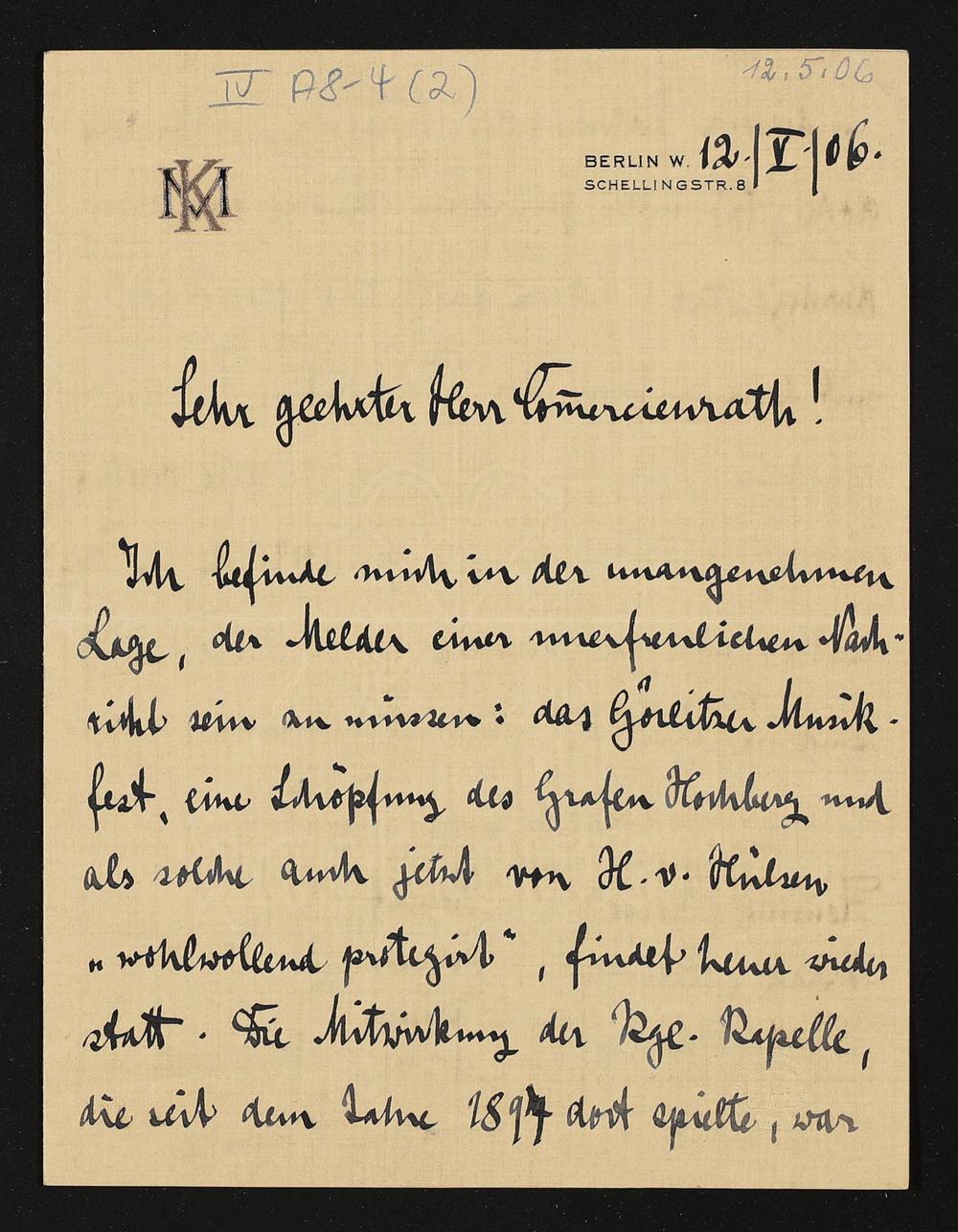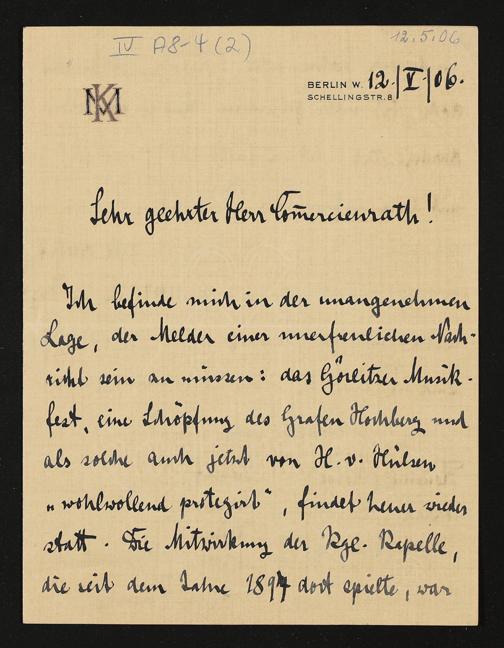 eigenhändiger Brief von Karl Muck an Adolf von Gross