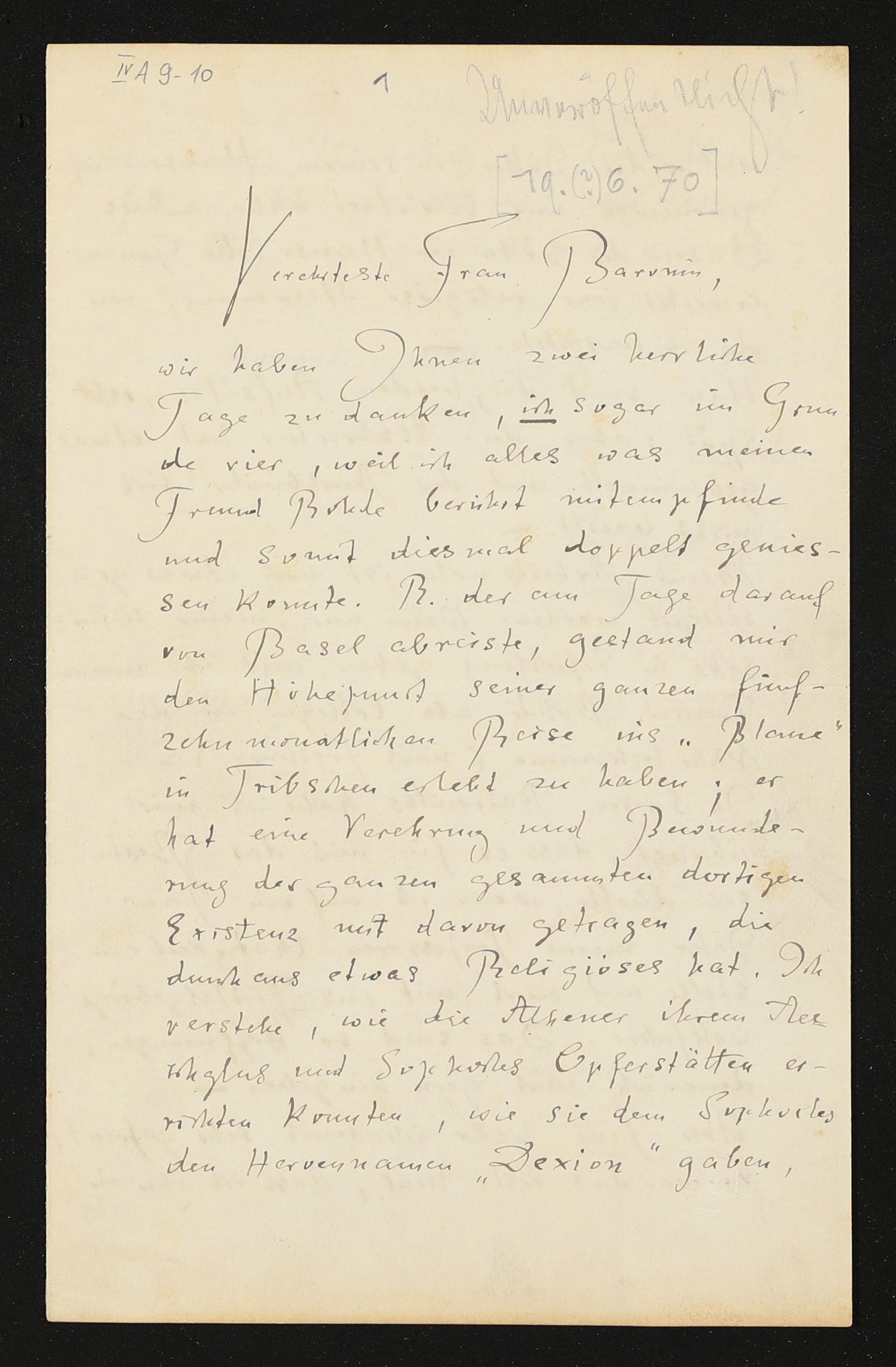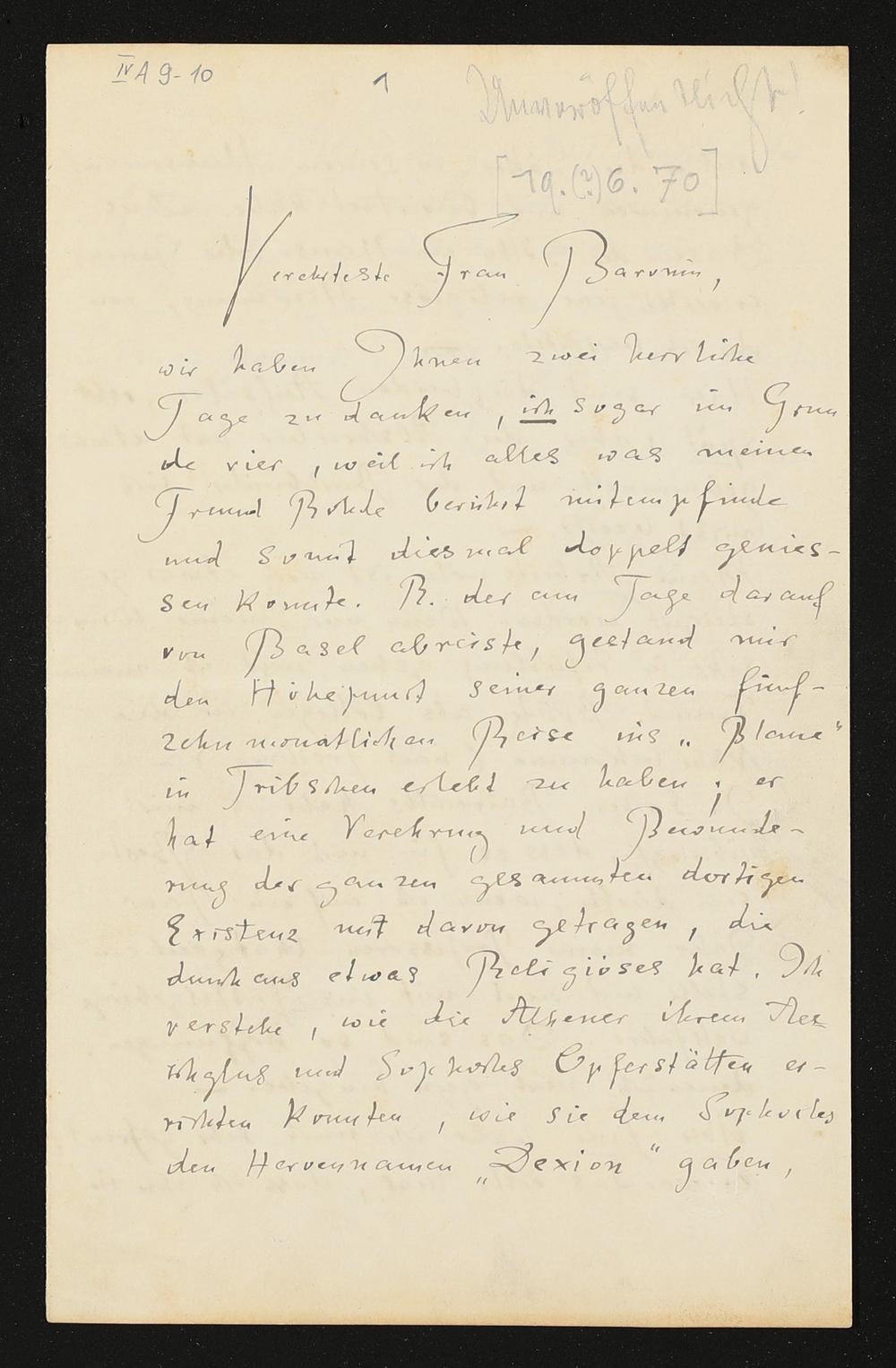 eigenhändiger Brief von Friedrich Nietzsche an eine unbekannte Baronin
