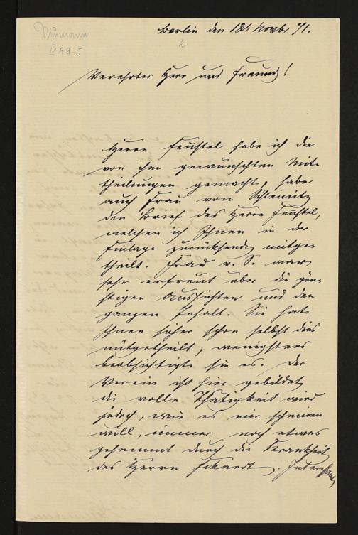 eigenhändiger Brief von Wilhelm Neumann an Richard Wagner