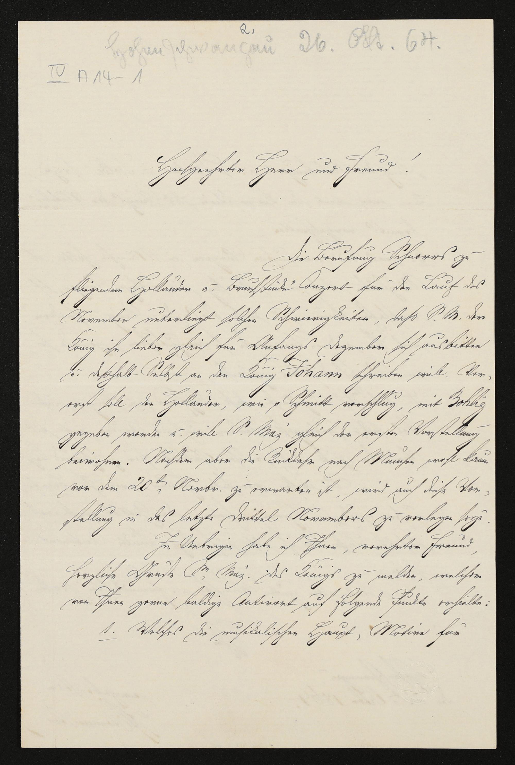 eigenhändiger Brief von Franz Seraph Pfistermeister an Richard Wagner