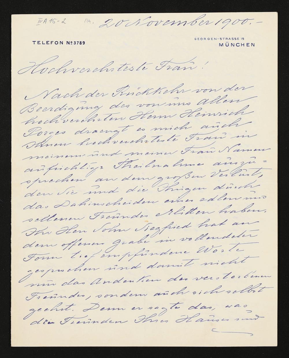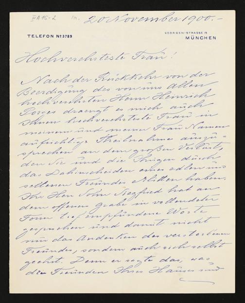eigenhändiger Brief von Carl Faber an Cosima Wagner