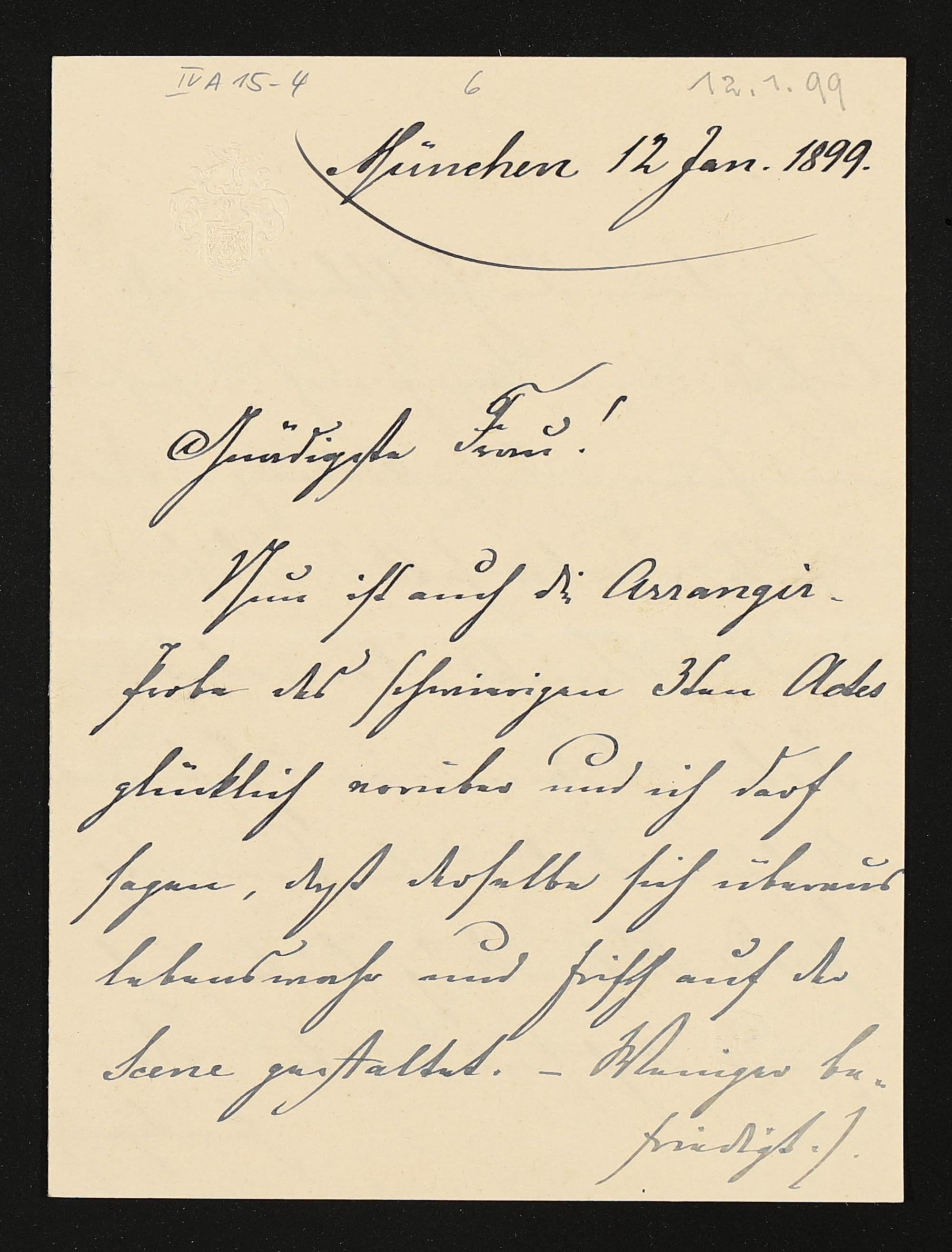eigenhändiger Brief von Ernst von Possart (Intendant der Königlich Bayerischen Hoftheater) an Cosima Wagner